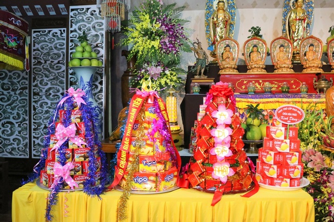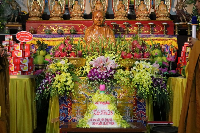 To express the devotion and thanks of patriarch’s gratitude, in his death celebration, the students in the pious class, the youth and Buddhists prepared fruit and flowers rising up to patriarch soul. Singing from the heart of Buddhist meriting thanks for the patriarch was offered by Lien Huong singer as well as Buddhist from Hoang Phap pagoda.