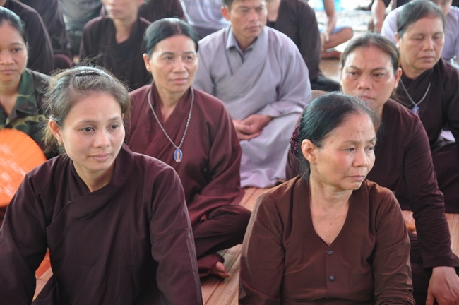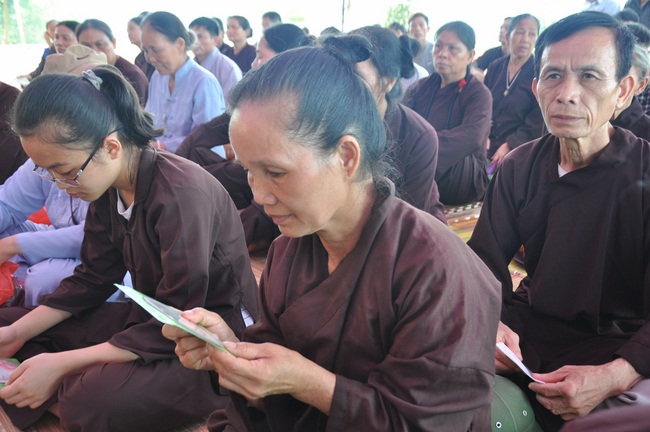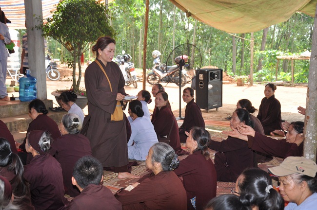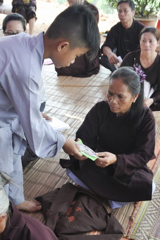At the end of the Dharma talk, Ven Thich Chan Tinh gave some VCDs: “The Eight Laws Relating to the Vicissitude of Life†as the Dharma gifts to Yen Cu’ Buddhists.