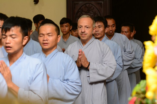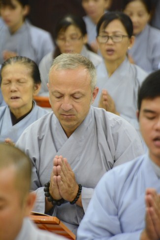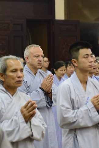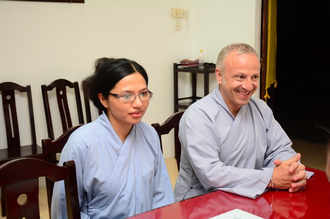 As a European, he believes in Catholic, but he has good feelings on the Buddhism because of its compassion, tolerance, open-mind. He also hopes to study deeply in Buddhism which discovers many good things from the Buddha’s teaching.