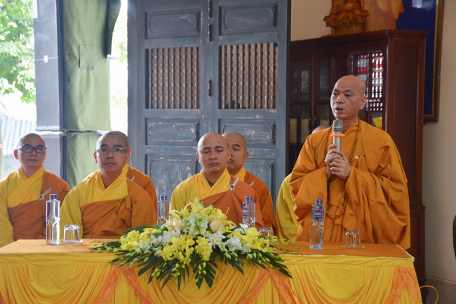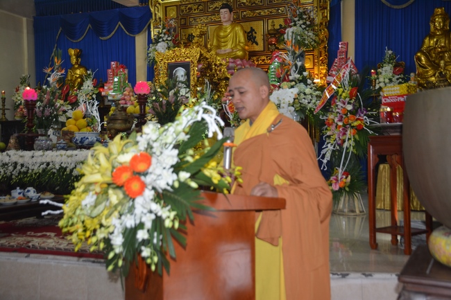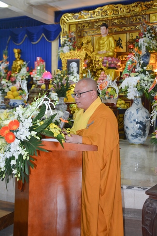 On behalf of the monks and nuns at the ceremony, Senior Venerable Thich Thanh Dinh had some words of Buddist monks to the entire Ashram. The monk praised the gratitude of the Dharma followers for the grace of the Founder. Through His life, the Senior Venerable encouraged Buddhists to follow the ancestor’s example to live well, keep good practice on five precepts, and benefit ourselves, family and society.