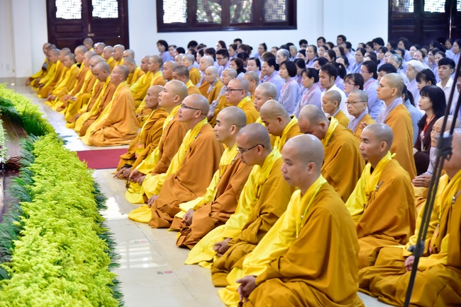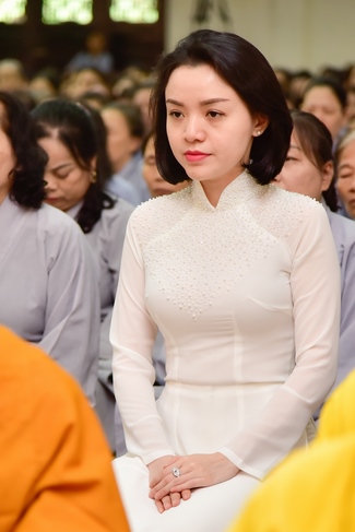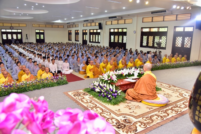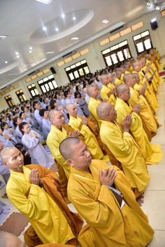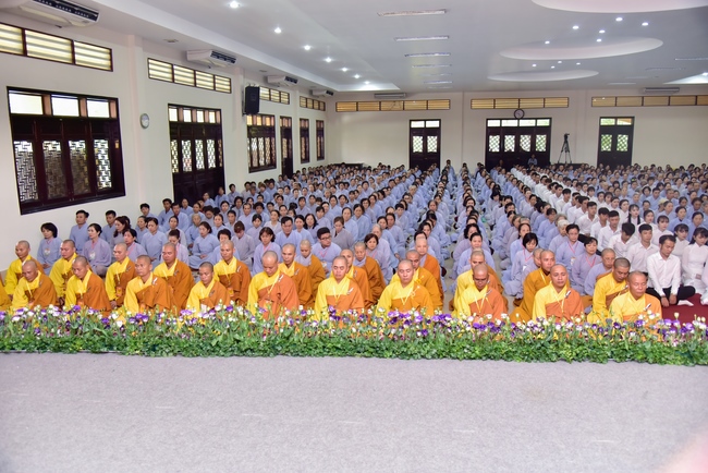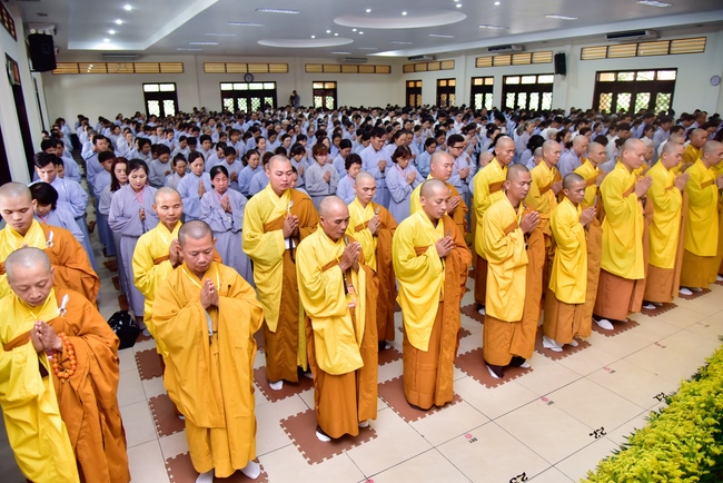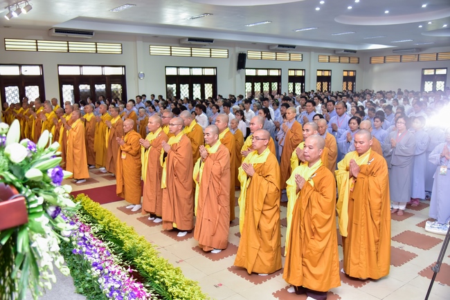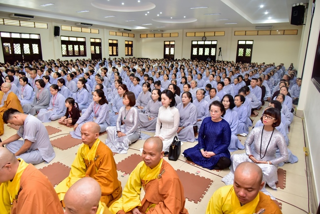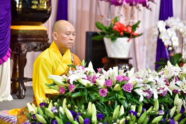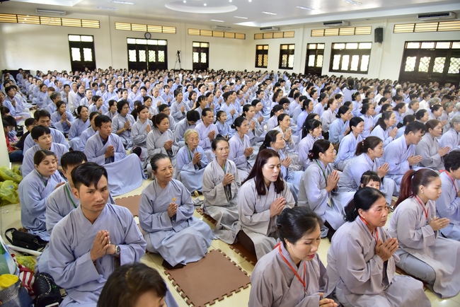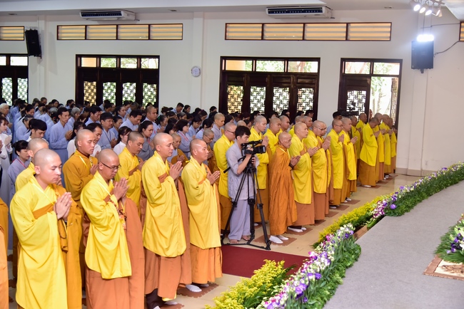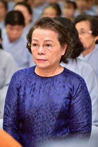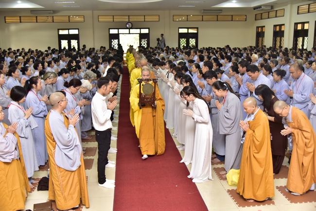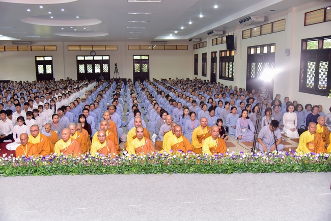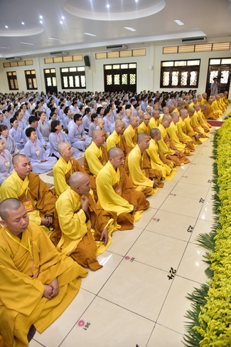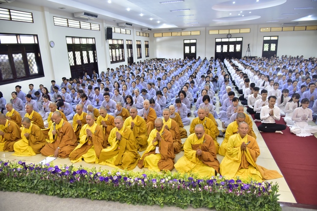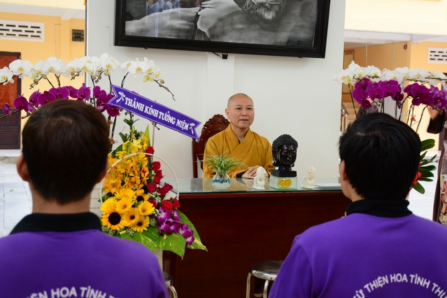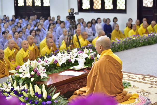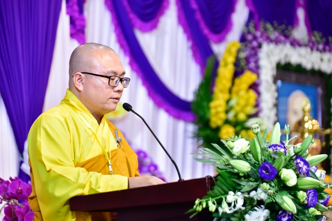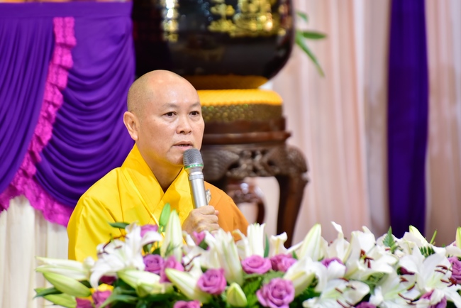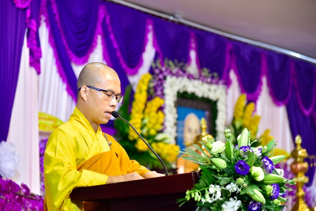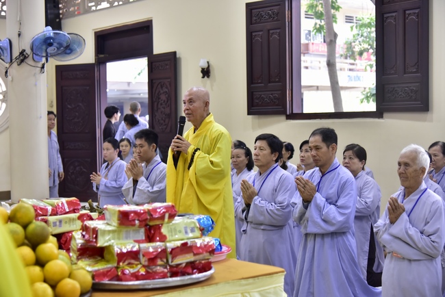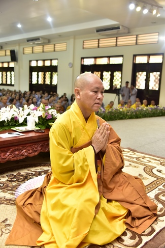 In response, Buddhist Dieu Hao, representative of lay members, expressed the feelings and gratitude from generations to the Founder’s merits. Next, Senior Venerable Thich Chan Tinh, head of anniversary organizing department, on behalf of Hoang Phap sangha, sent big thanks to audience for its kind attention. Then he delivered a Dharma talk encouraging everyone following the example of the Master Founder in practicing.