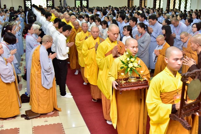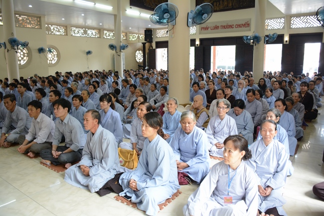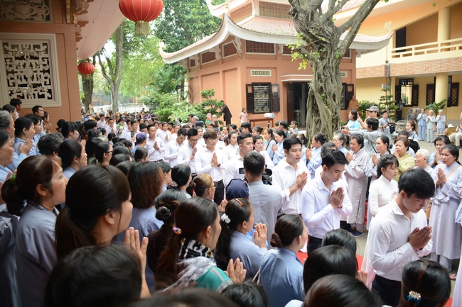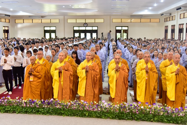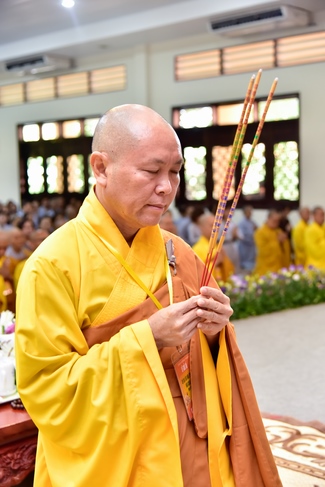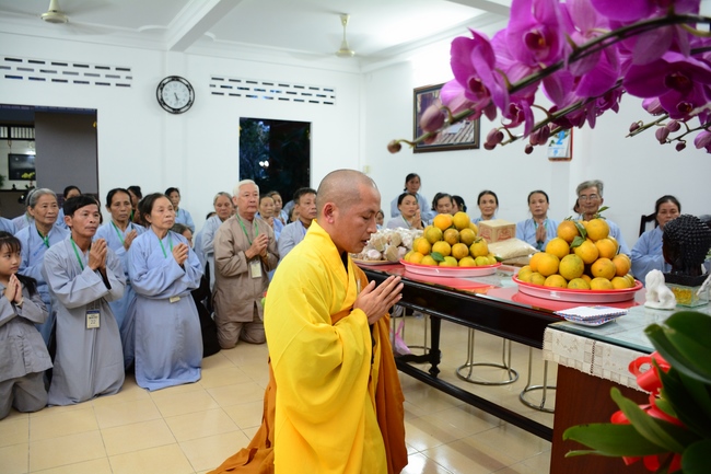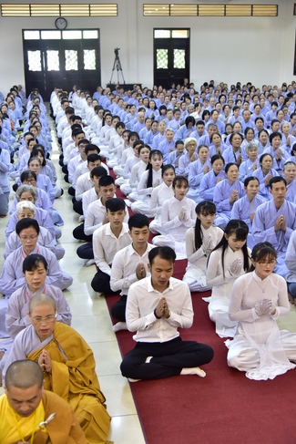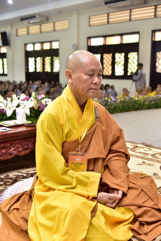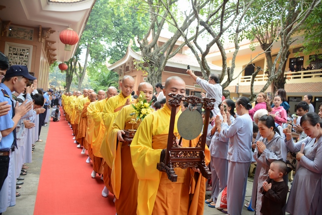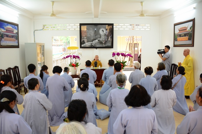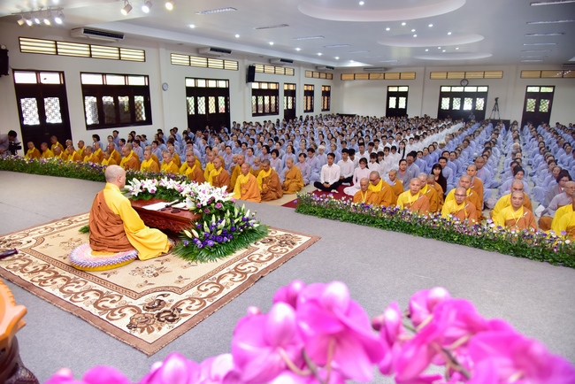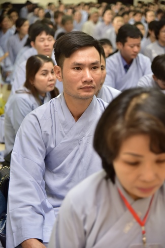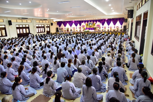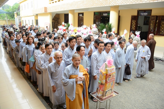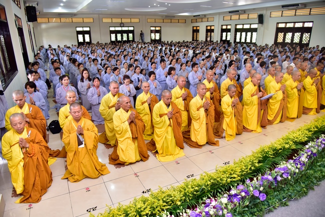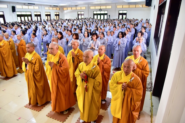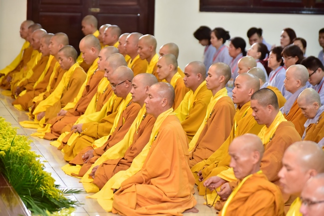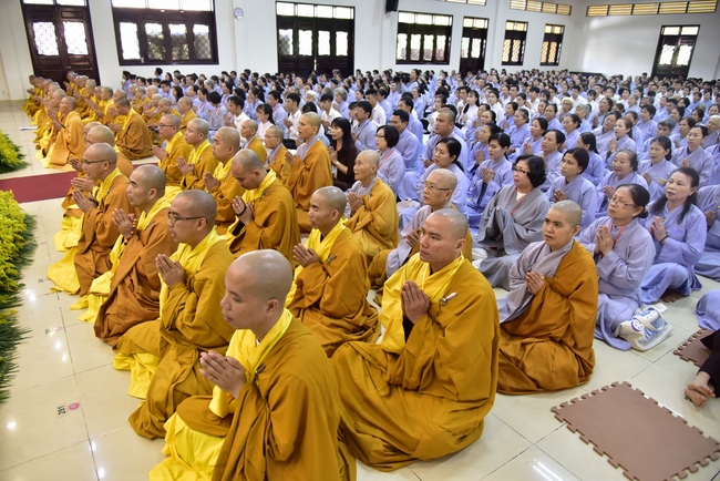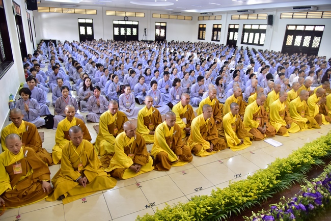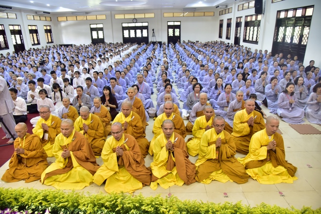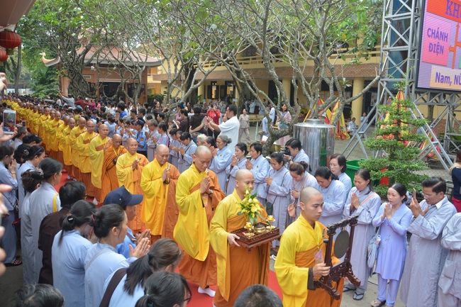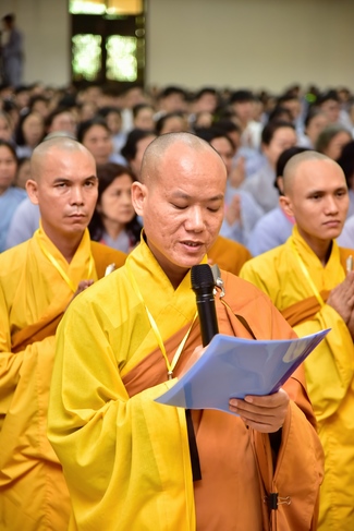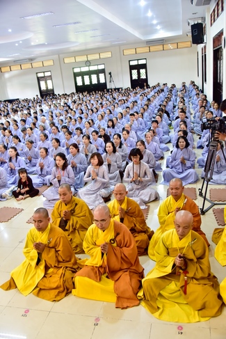 In response, Buddhist Dieu Hao, representative of lay members, expressed the feelings and gratitude from generations to the Founder’s merits. Next, Senior Venerable Thich Chan Tinh, head of anniversary organizing department, on behalf of Hoang Phap sangha, sent big thanks to audience for its kind attention. Then he delivered a Dharma talk encouraging everyone following the example of the Master Founder in practicing.