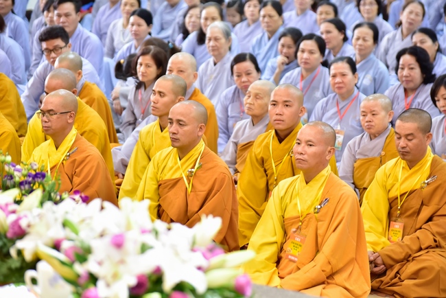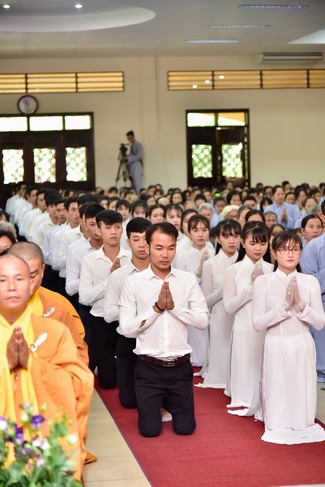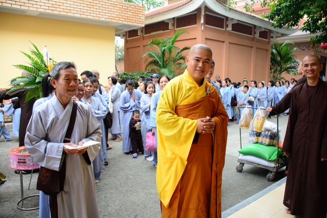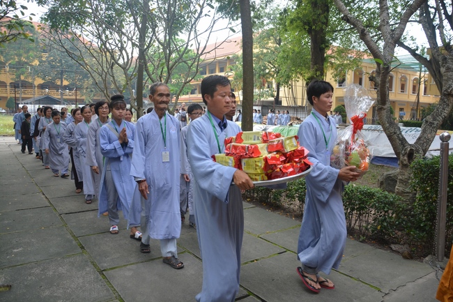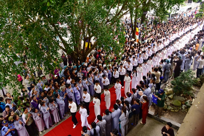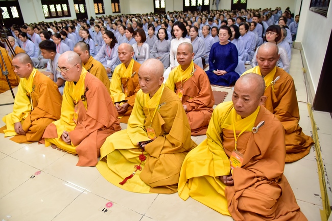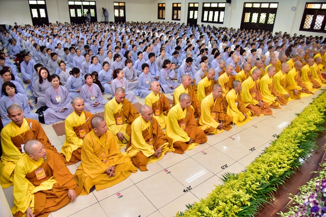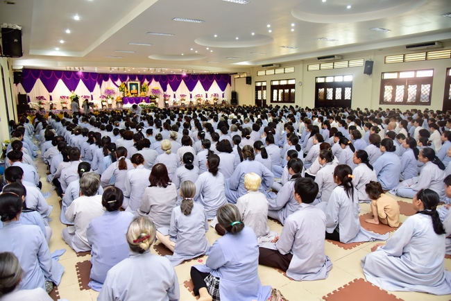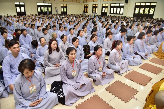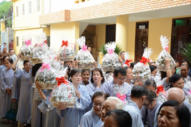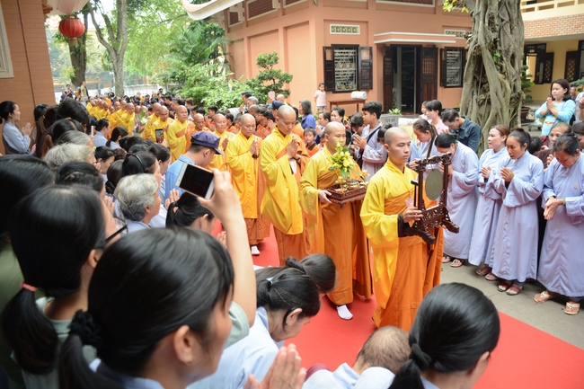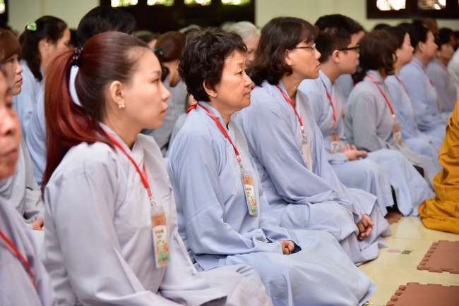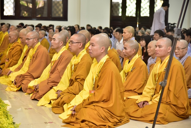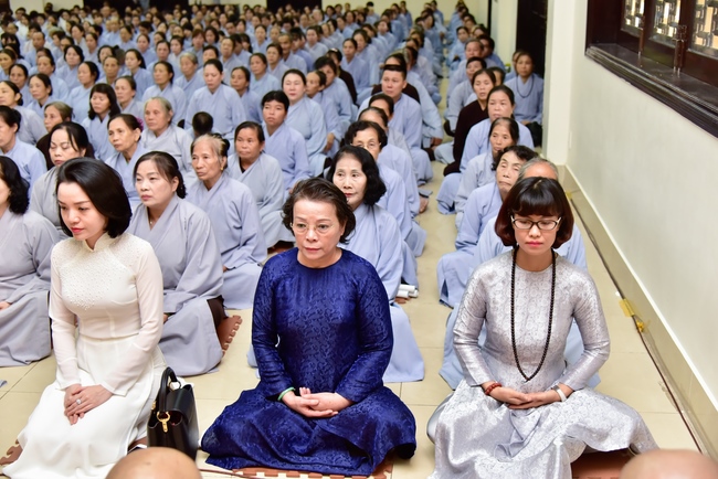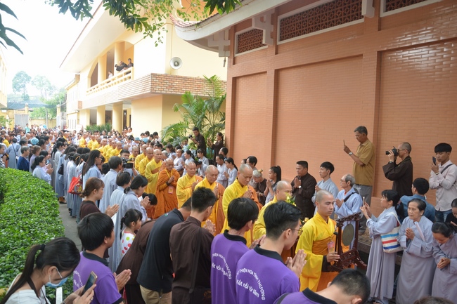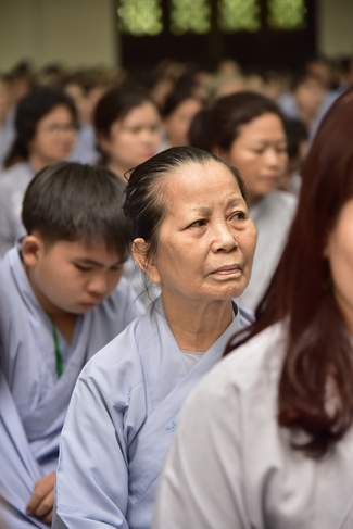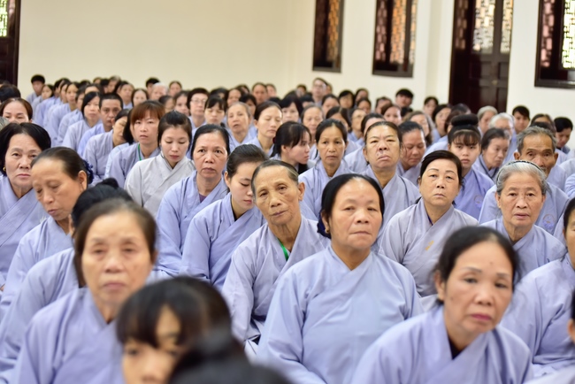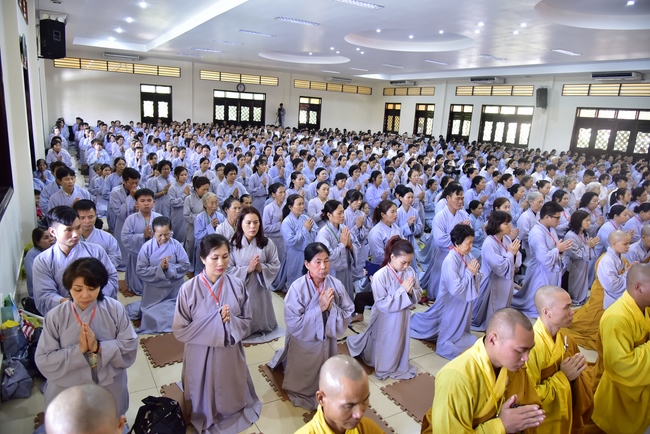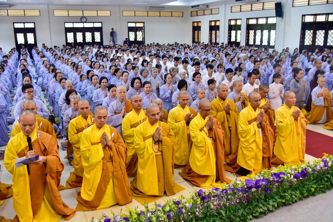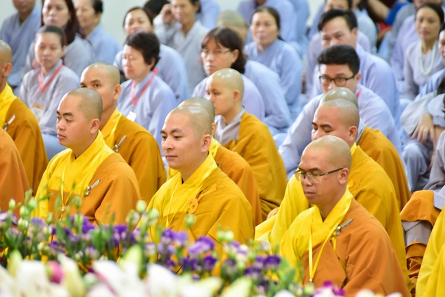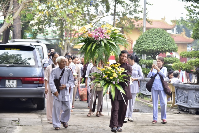 In response, Buddhist Dieu Hao, representative of lay members, expressed the feelings and gratitude from generations to the Founder’s merits. Next, Senior Venerable Thich Chan Tinh, head of anniversary organizing department, on behalf of Hoang Phap sangha, sent big thanks to audience for its kind attention. Then he delivered a Dharma talk encouraging everyone following the example of the Master Founder in practicing.