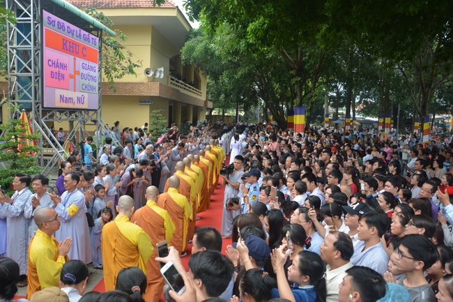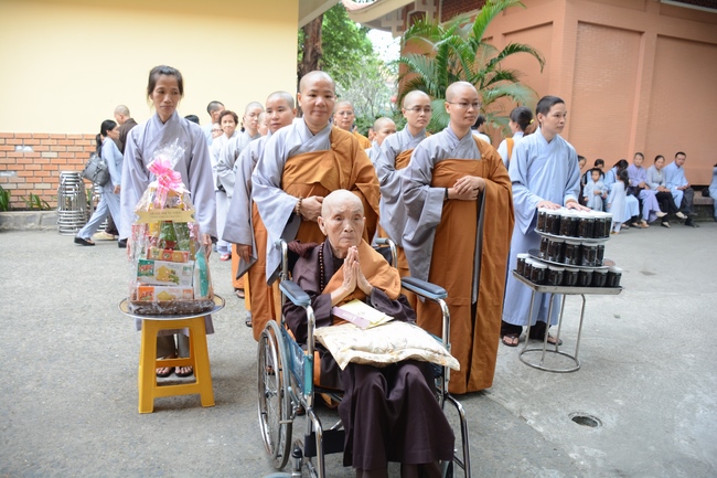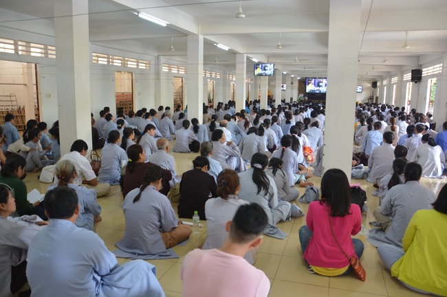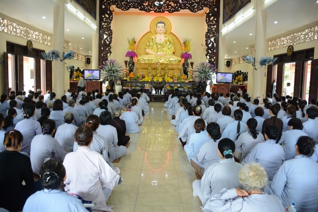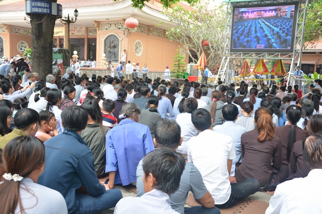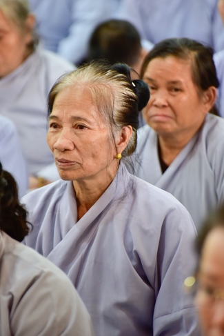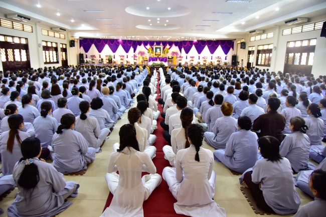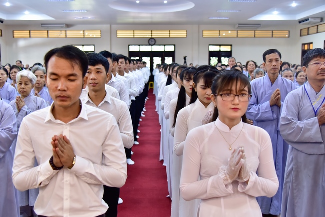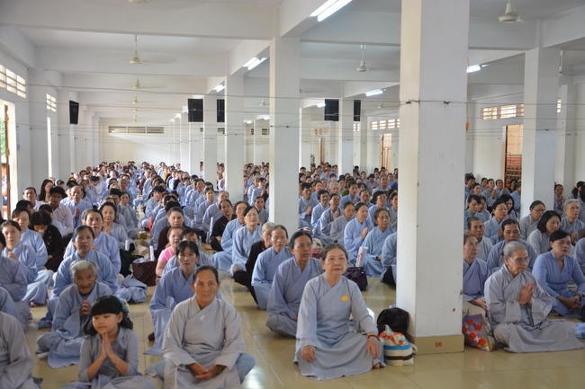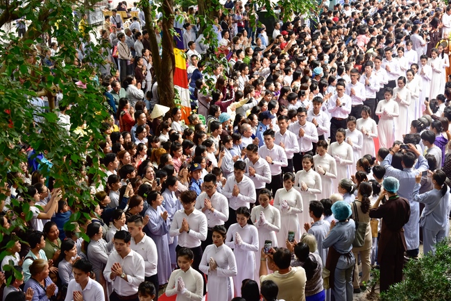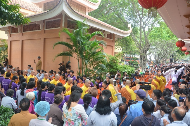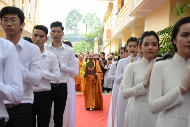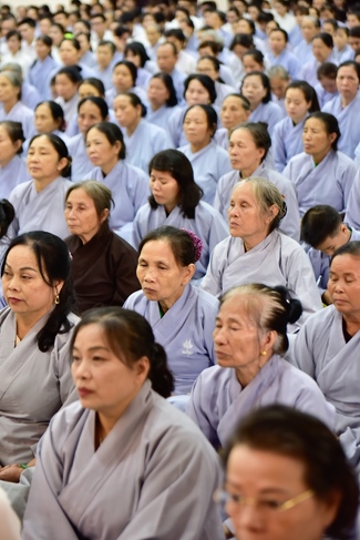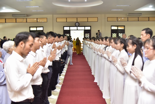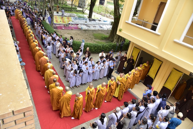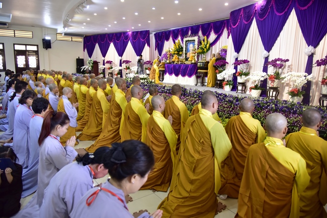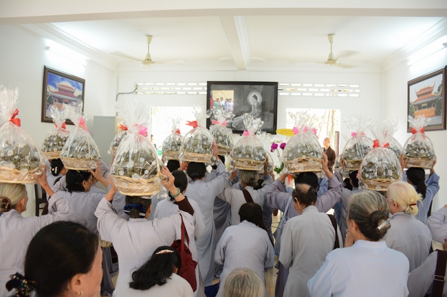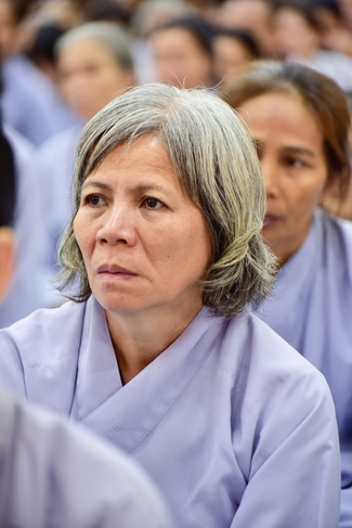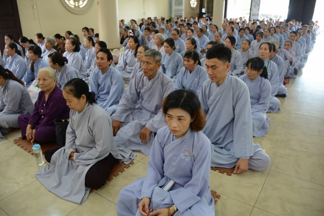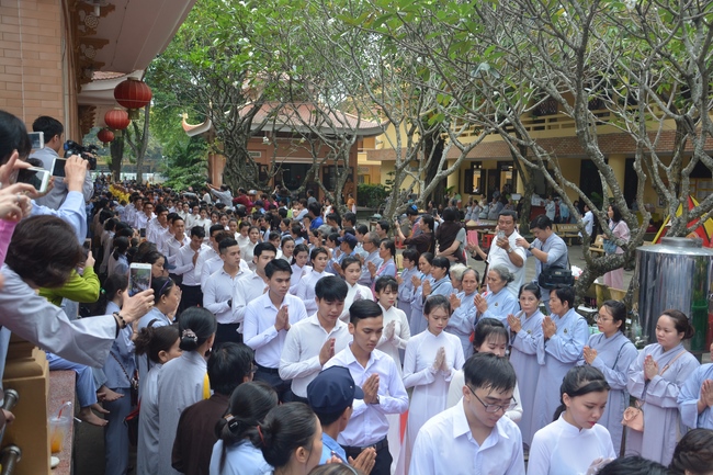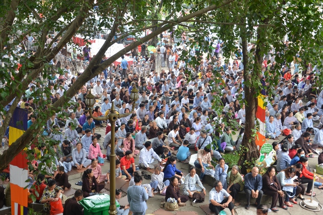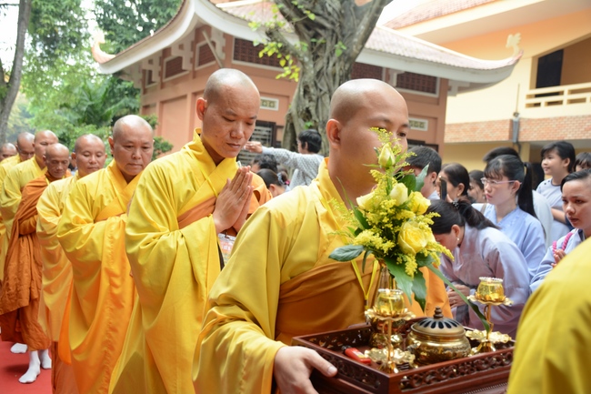 In response, Buddhist Dieu Hao, representative of lay members, expressed the feelings and gratitude from generations to the Founder’s merits. Next, Senior Venerable Thich Chan Tinh, head of anniversary organizing department, on behalf of Hoang Phap sangha, sent big thanks to audience for its kind attention. Then he delivered a Dharma talk encouraging everyone following the example of the Master Founder in practicing.