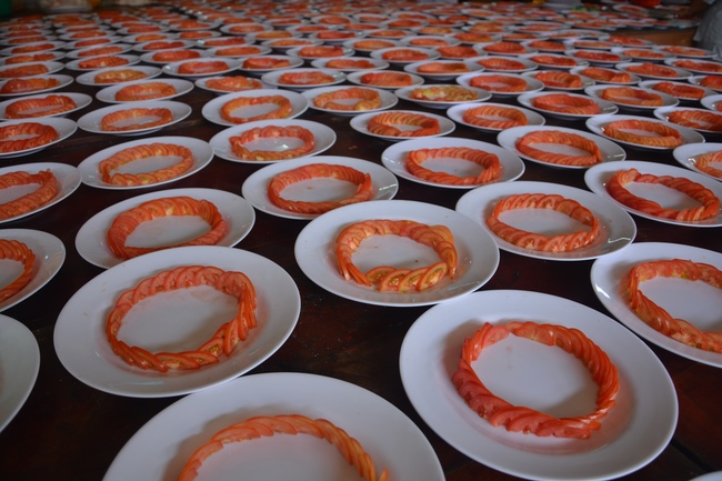 At 9:00, in the sound of prajna drum, Buddhists in queues pressed palms together to respectively welcome venerable clergy men coming to the main hall for the ceremony.