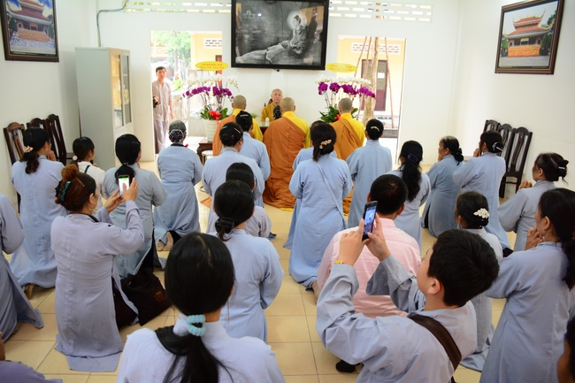 Via the Master life, Senior Venerable Thich Chan Tinh encouraged Buddhists following the example of the Founder of Hoang Phap pagoda to live properly in secular/religious life, benefiting oneself, family and community.