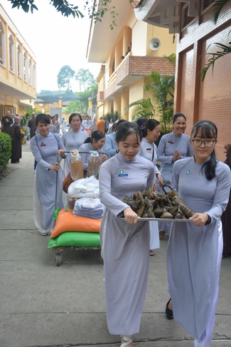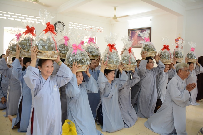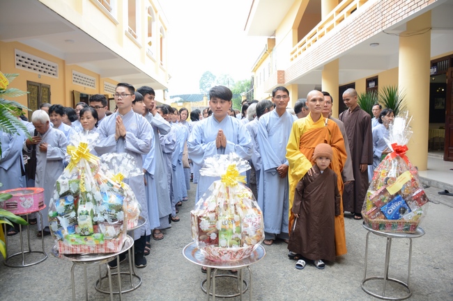 Everyone coming to the ceremony got Dharma gift from organizer including DVD "Le Gio To Co Hoa Thuong Ngo Chan Tu," VCD "Nam Cau Ue cua Tam", and calendar with attached events and retreat schedule in 2018 of Hoang Phap pagoda.