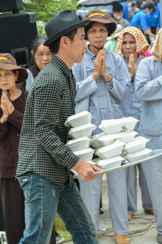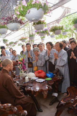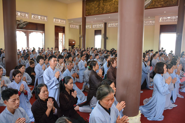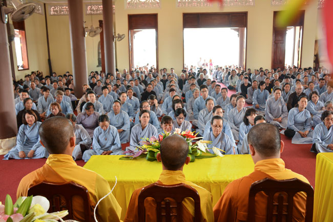 In the afternoon of the day, the Senior Venerable\r\ntransmitted Sarana-gamana (the Three Refuges) and Panca Veramani (the Five\r\nCommandments) to more than five hundred good men and believing women. In the\r\nceremony, the Senior Venerable taught and explained the most common concepts\r\nfor beginners of Buddhism such as The Triratna Refuge, The Five\r\nCommandments, Repentance, etc. The ceremony ended in the happiness of all the\r\nattendees.