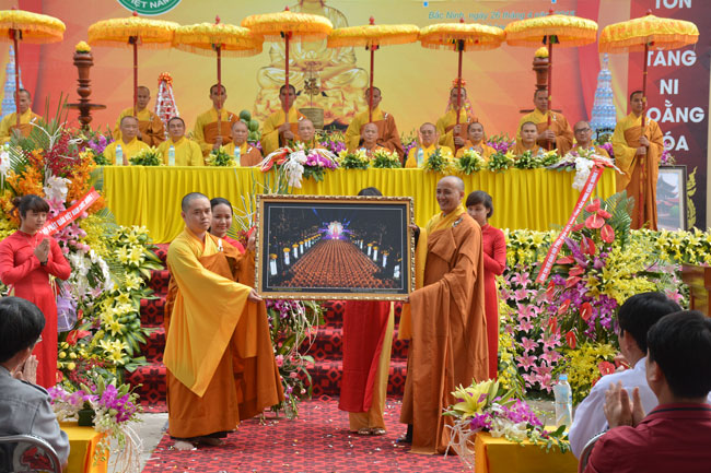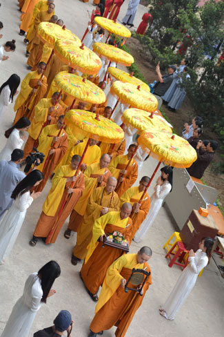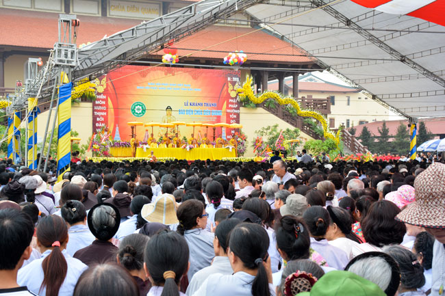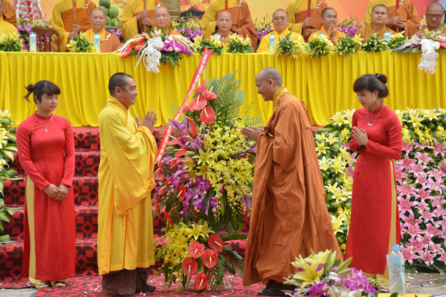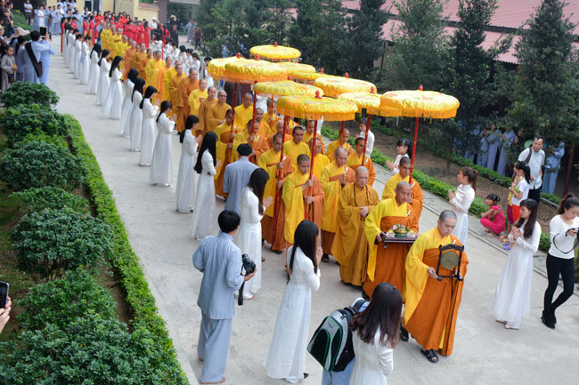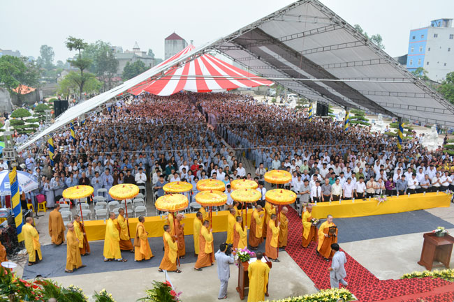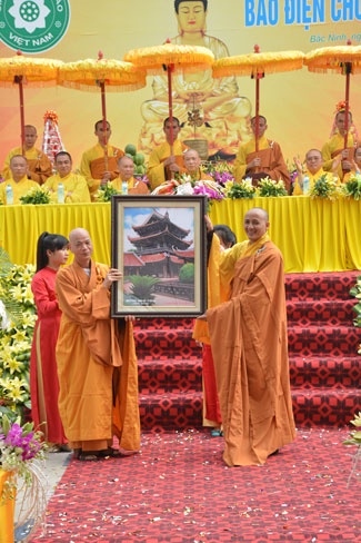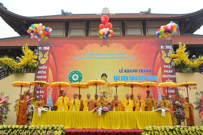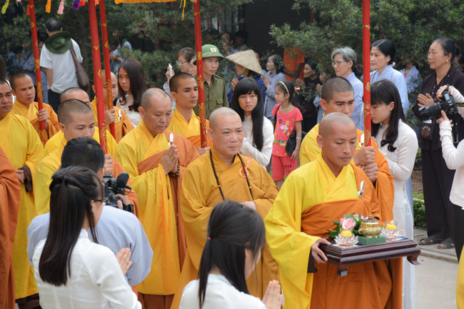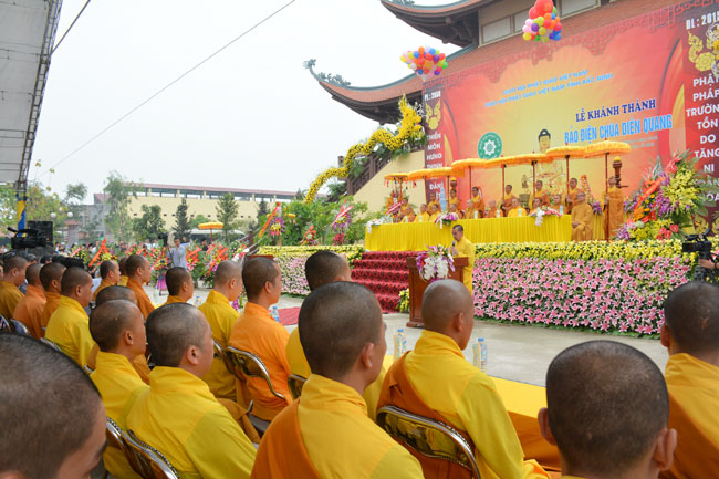 Accepting the invitation of the Junior Venerable Thich Tam Quan, on April 26th 2014 (Lunar March 8th, Horse Year), … Senior Venerable Thich Chan Tinh and the monks of Hoang Phap pagoda together with the abbots of several branches directly under it came and attended the ceremony of Great Hero Temple inauguration in Dien Quang pagoda (Guot hamlet, Viet Hung village, Que Vo hamlet, Bac Ninh village town).