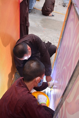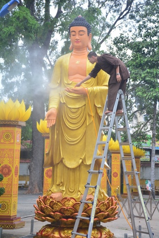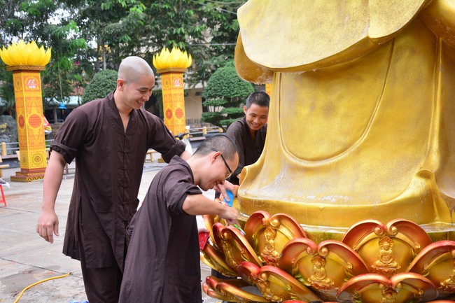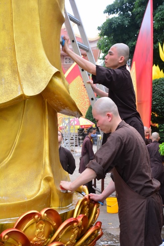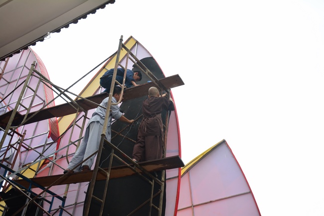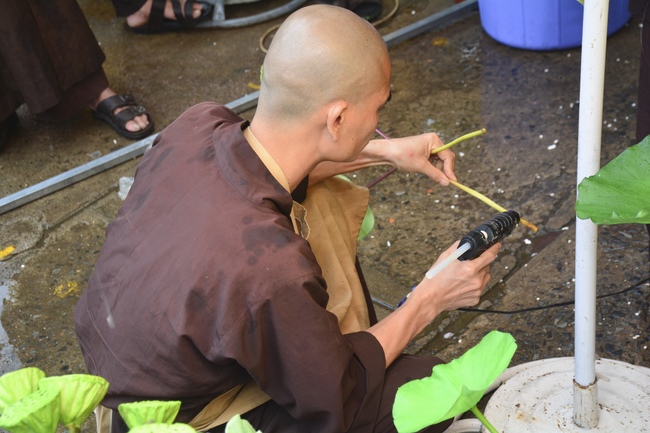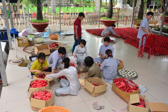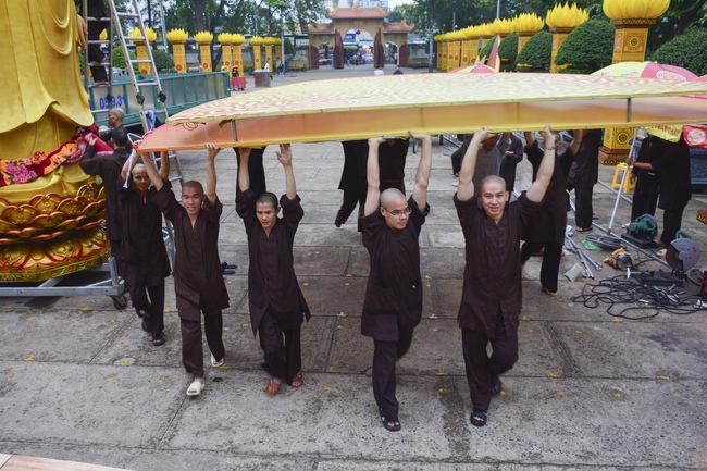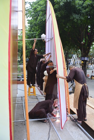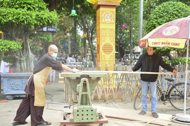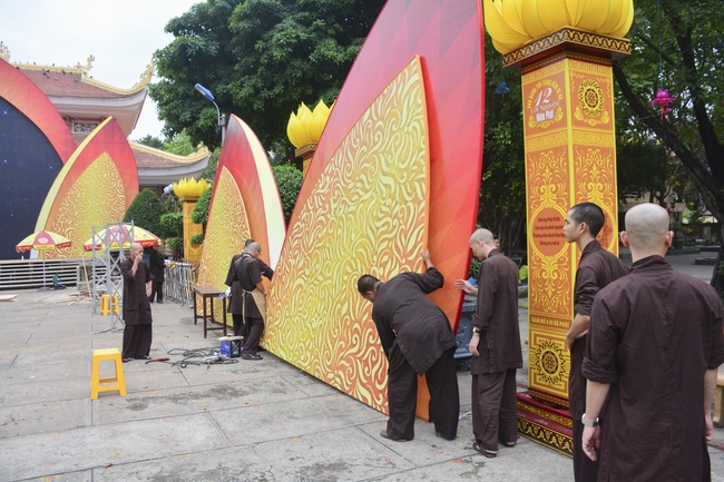 As of this time, the preparation for the Amitabha Day is mostly completed. The monks and Buddhists of Hoang Phap pagoda are hurriedly fulfilling the last details.