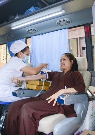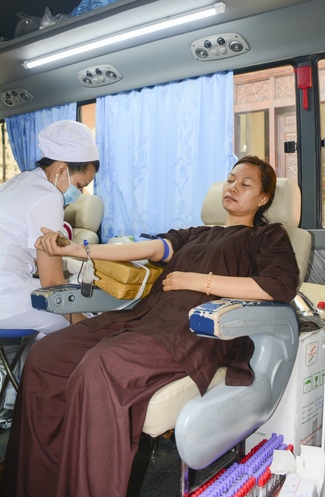 Acknowledging the deep meaning of the blood donation, the great behavior and Vietnamese tradition of solidarity, Monks and Buddhists at Hoang Phap pagoda actively advocate and join the activity as a part of social responsibility activity of the pagoda. More and more, blood donation campaign becomes a practical work demonstrating loving kindness. It is the voice connecting hearts to hearts. The blood of volunteers brings life to the needy ones, and faith/hope to unhappy people.
