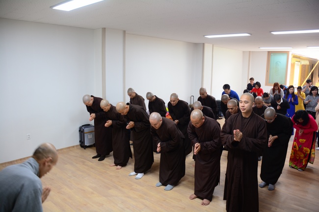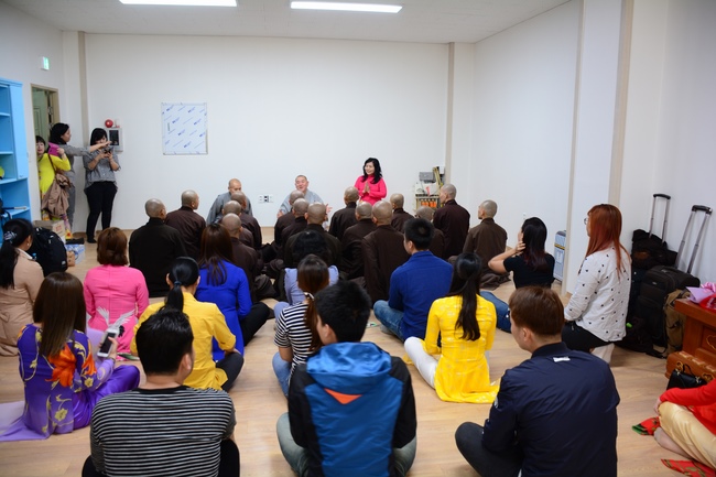 On May 01, 2017 (April 06, lunar calendar), based on the invitation from Buddhist Luu Thi My Ha, director of Vietnamese Cultural House in Incheon city, Korea and the permission of abbot Thich Chan Tinh, Reverend Thich Tam Dao and clergy delegation from Hoang Phap pagoda came to Incheon, South Korea to hold Vesak ceremony for overseas Vietnamese living, studying or working there.
