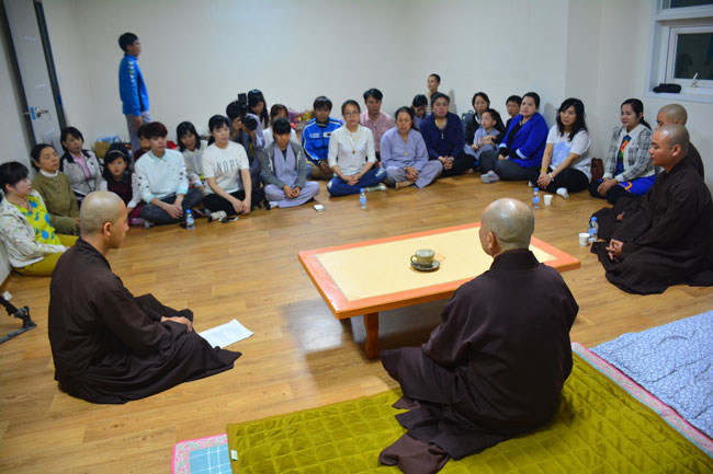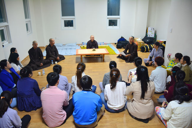 After that, the group has come to the Pagoda, met with the Abbot Hwaung and sent greetings to the awaiting Vietnamese nationals residents in South Korea. Venerable ThÃch Chân TÃnh and the group were really moved with the Sangha’s hospitality and warm sentiments from Vietnamese Buddhists there.