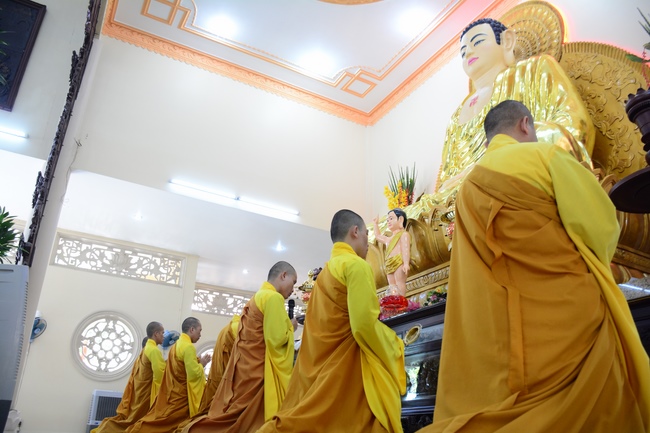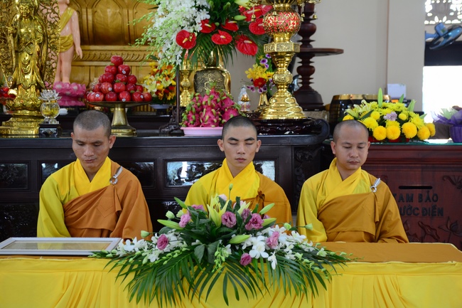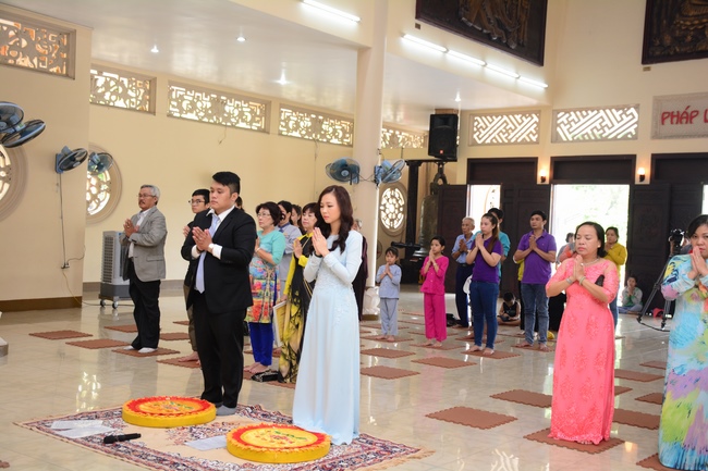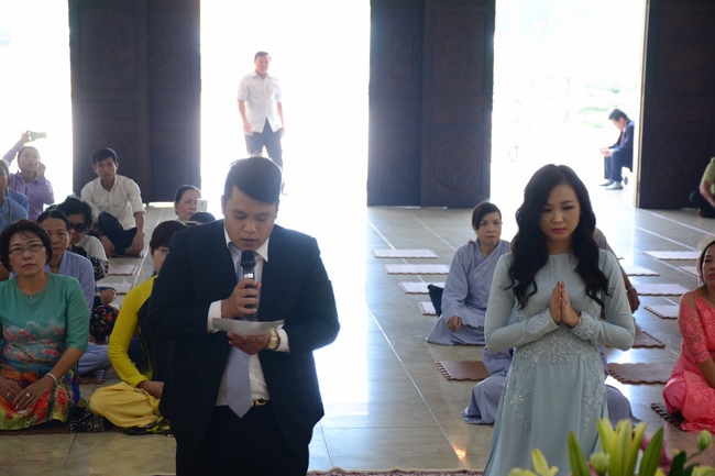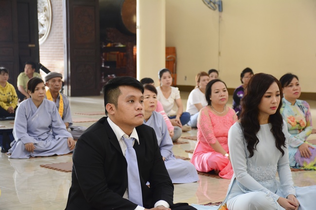 This morning Aug 12, 2017 (Jun 21, leap month, lunar calendar), monks of Hoang Phap Pagoda witness the Buddhism Wedding Ceremony for the young couple; groom Nguyen Trung Son and bride Tran Huynh Yen Thanh.
