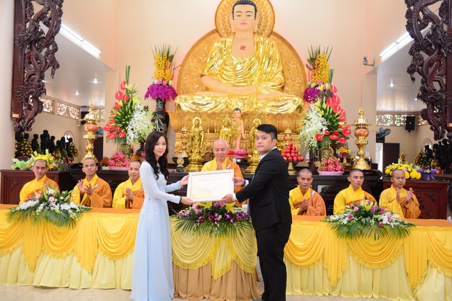 At the end of the ceremony, the Venerable presents wedding gift and Buddhism marriage certificate to the just-married couple.