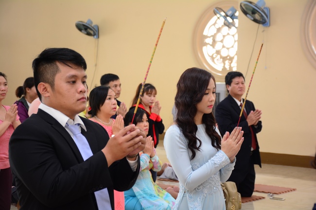 This important day is the meaningful start in marriage life for couples with the witness, blessings and advices from virtuous monks about principles in family, proper behaviors and experiences for a home-sweet-home.