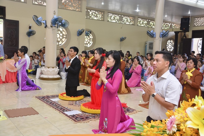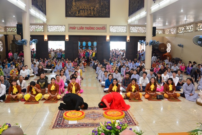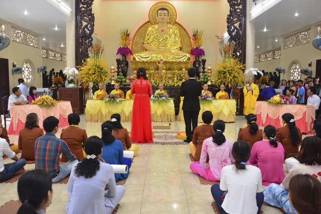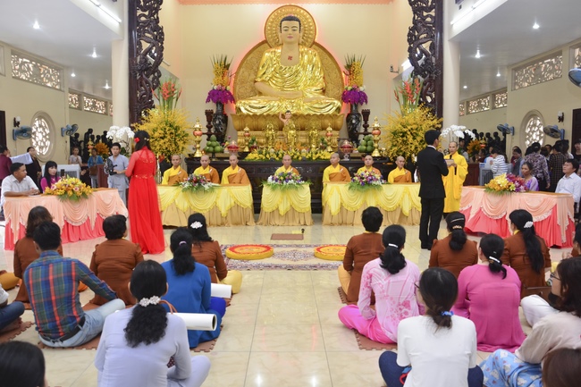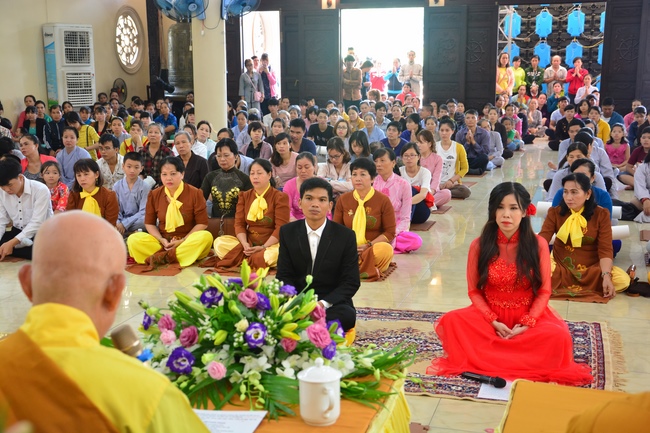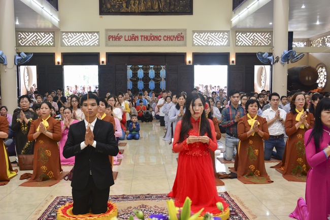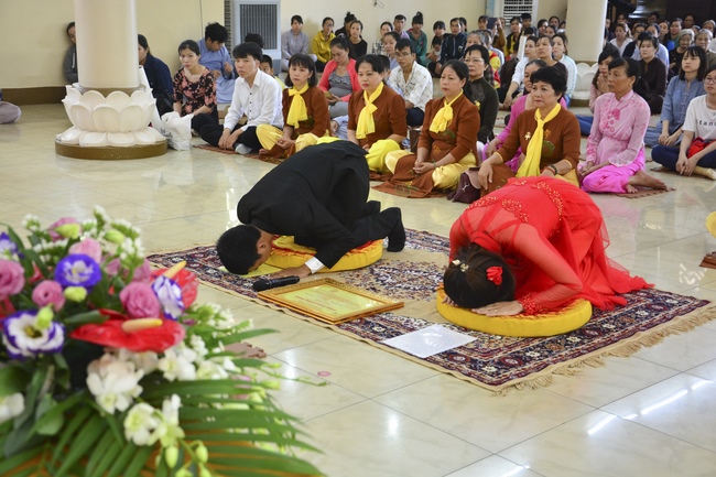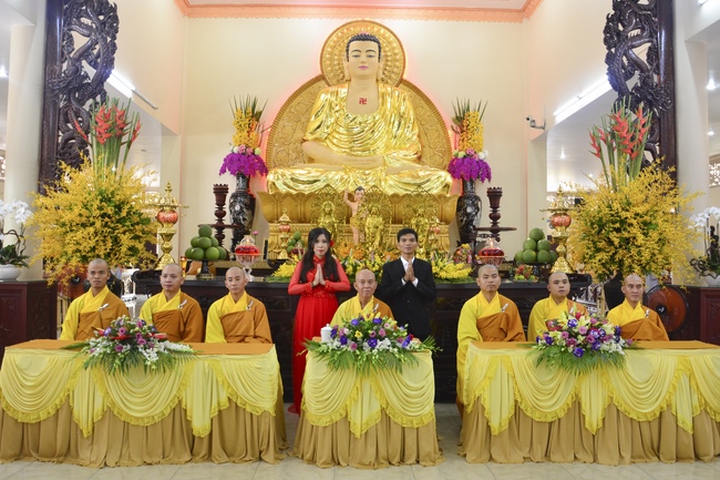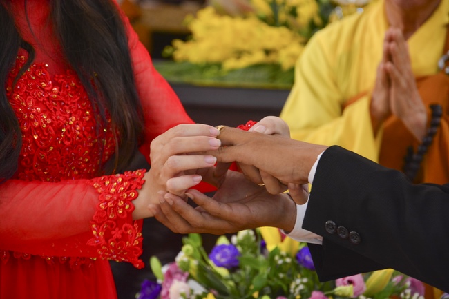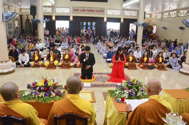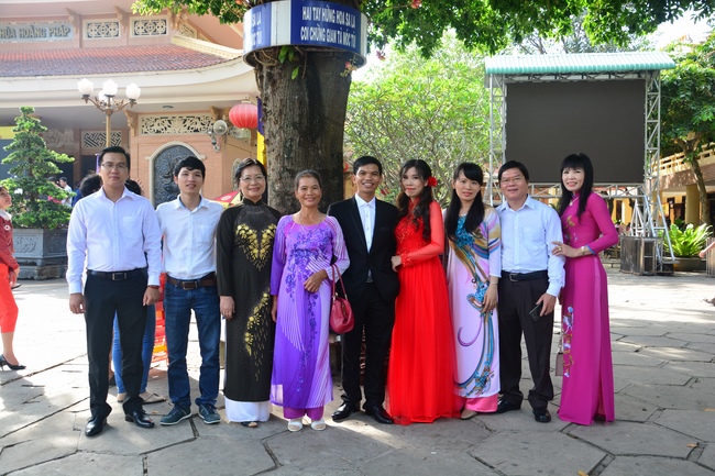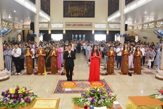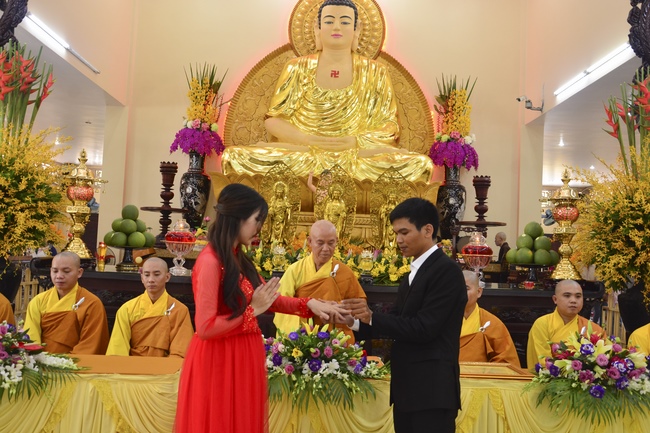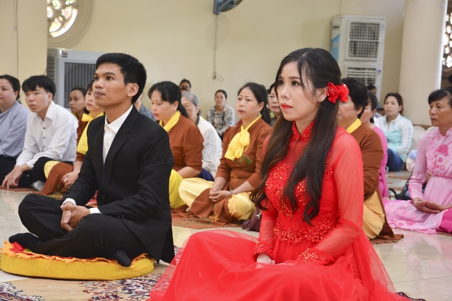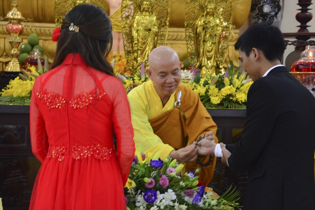 With the traditional rituals such as kowtowing Triratna and parents, handing wedding rings, taking Buddhism marriage oath for the bride and groom ... the ceremony has left a meaningful impression and unforgettable memory for the young couple. In coming time, there may be challenges, difficulties or even collision in marriage, this event will help spouses looking back to correct errors, recalling these advices to overcome hardship and keep on preserving the little home-sweet-home of their own.