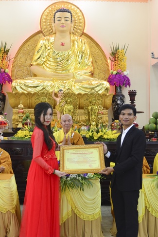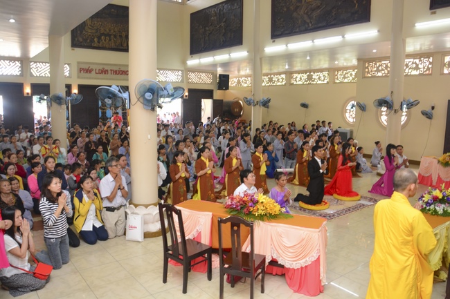 This morning Sep 03, 2017 (Jul 13, lunar calendar), Hoang Phap Sangha holds Buddhism wedding ceremony for young couple Nguyen Van Quang and Do Quynh Trang.