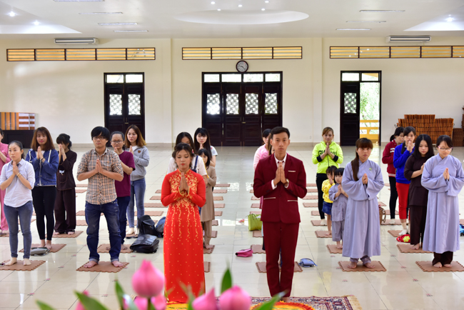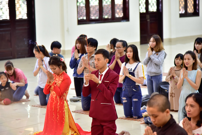 Today Sep 30, 2017 (Aug 11, lunar calendar), Hoang Phap Pagoda holds Buddhism wedding ceremony to bride Cao Thi Ngoc Anh and groom Pham Van Long.