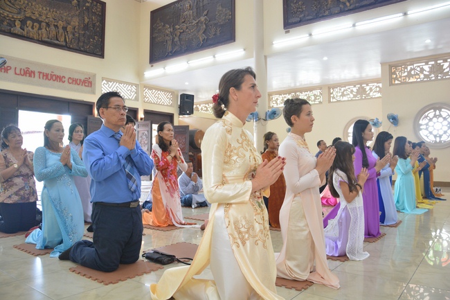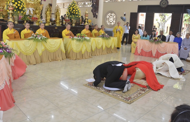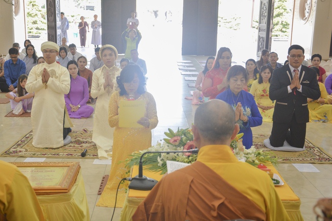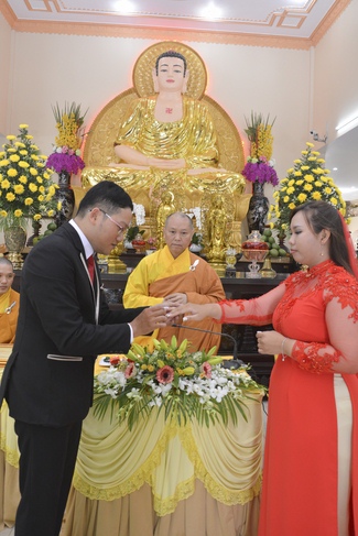 Responding to the request, on behalf of attending monks, Senior Venerable Thich Chan praised the spirit of families taking refuge in Triratna and having Buddhism wedding ceremony for their kids’ marriage. He also had a Dharma talk regarding the duty for husband and wife in the family. Besides, the Senior Venerable also shared how to build up happy marriage, deal with parents and relatives based on Buddha’s teachings. Together with those, each spouse should fulfill his/her marital responsibility as per Buddha teaching in Sigalovada Sutra to have an upbeat spiritual life toward a true-good-beautiful family.