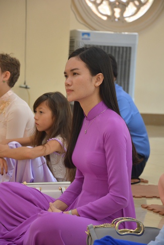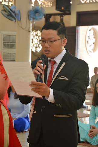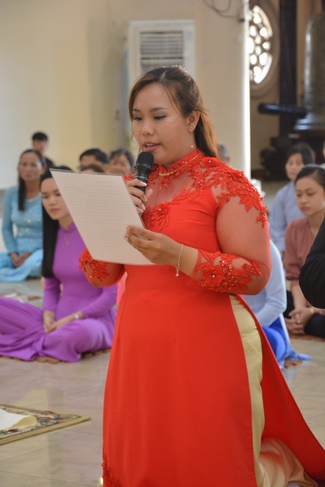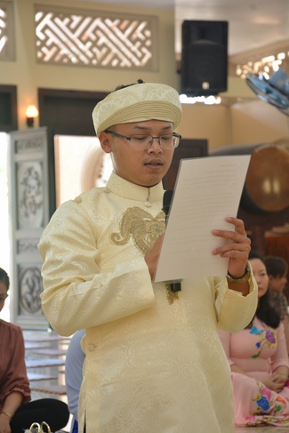 After offering incense to Buddha, it was the appealing from couples’ families for the witness, rites and blessings to this important event.