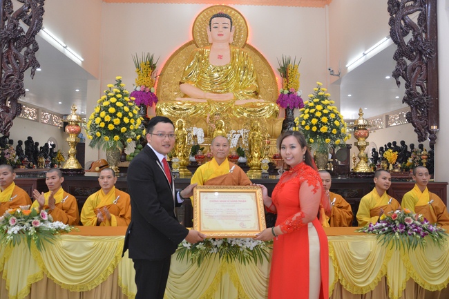 Ending the ceremony, the Senior Venerable handed Buddhism marriage certificates and wedding gifts to just-married couples.