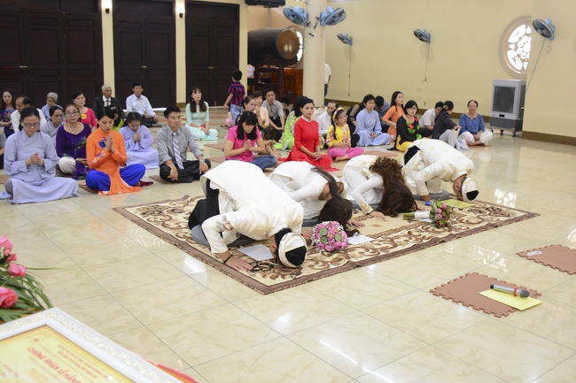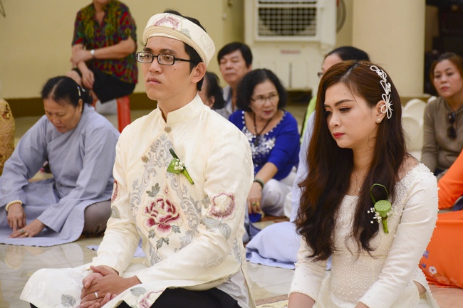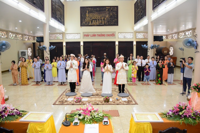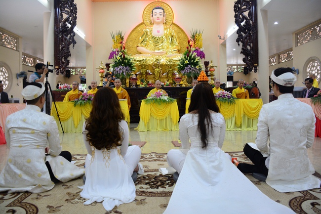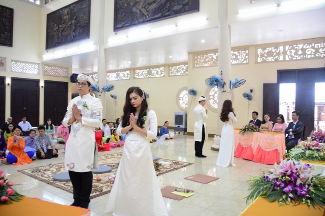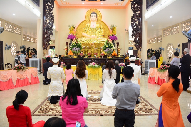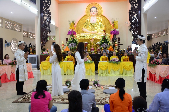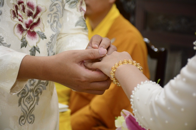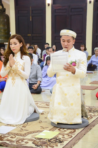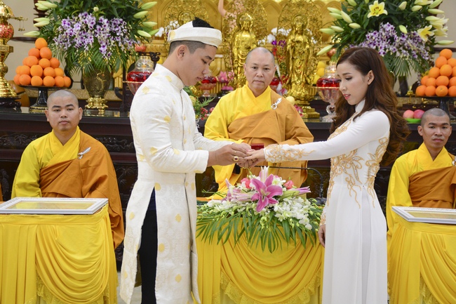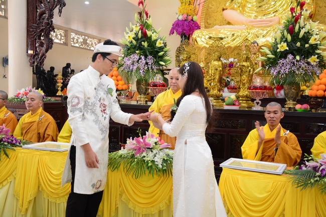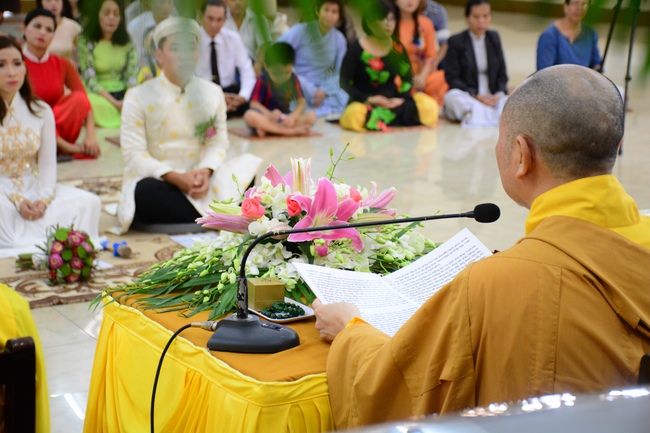 With traditional wedding rituals as expressing gratitude to Triratna and parents, handing wedding rings, taking oath of Buddhism marriage ... the ceremony has left deep impression and unforgettable memory in the mind of just-married couples. This will help them overcome difficulty or conflict that may occur in life. Monk’s advices will go abreast with their marriage and keep it warm and happy.
