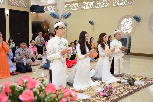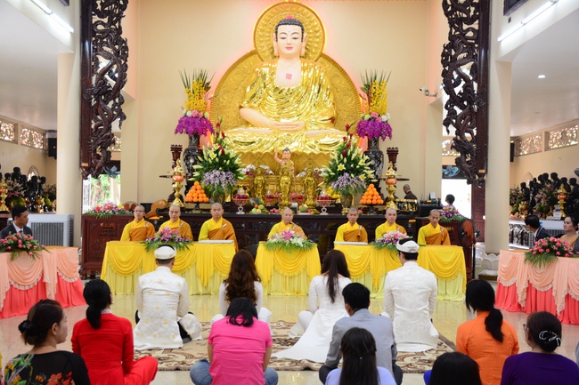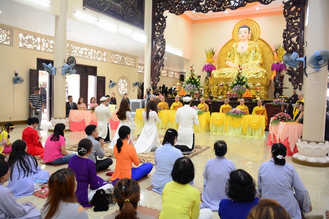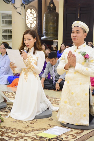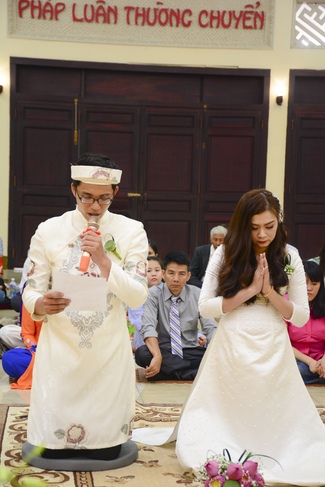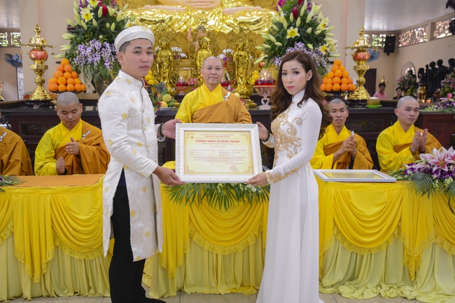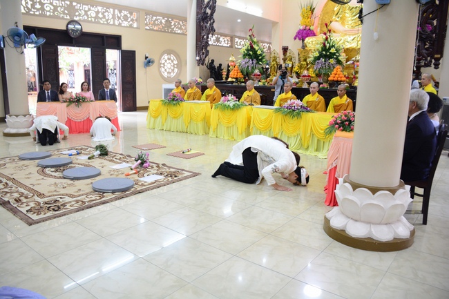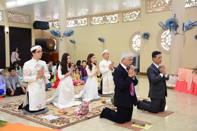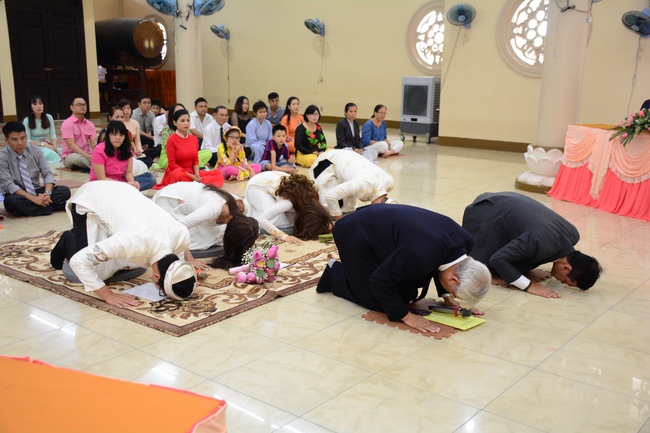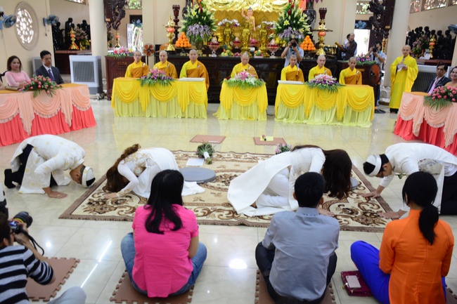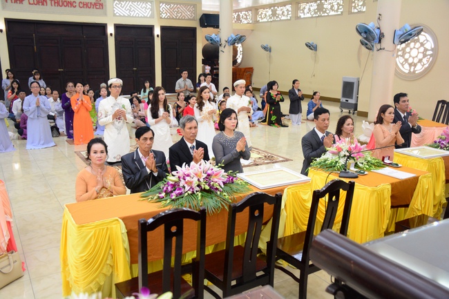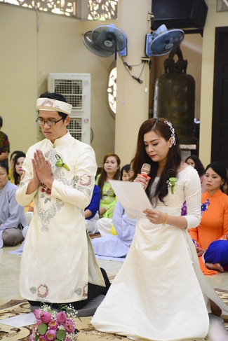 With traditional wedding rituals as expressing gratitude to Triratna and parents, handing wedding rings, taking oath of Buddhism marriage ... the ceremony has left deep impression and unforgettable memory in the mind of just-married couples. This will help them overcome difficulty or conflict that may occur in life. Monk’s advices will go abreast with their marriage and keep it warm and happy.