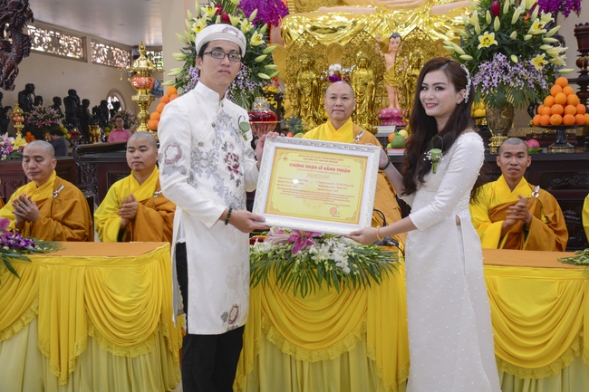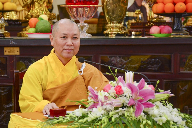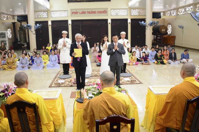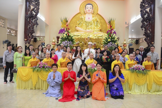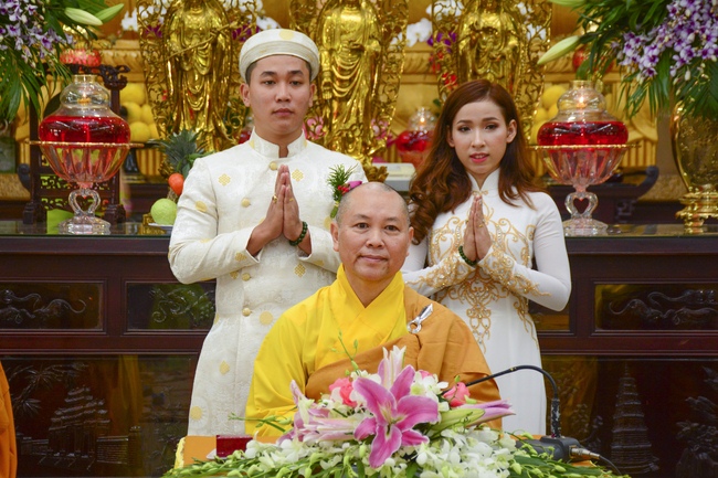 In response to the sincerity of Buddhists, Senior Venerable Thich Chan Tinh, Abbot of Hoang Phap Pagoda, sent his blessing and advices to couples.