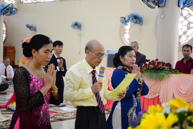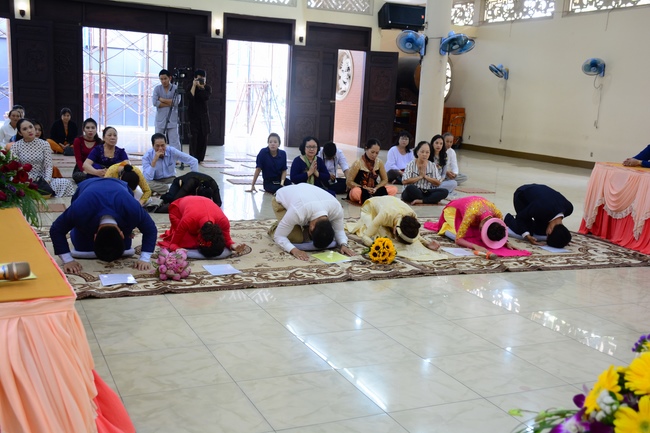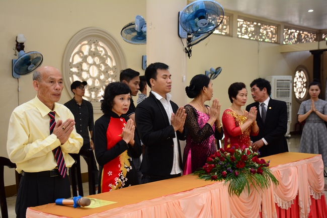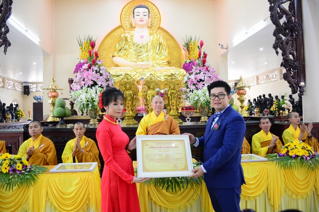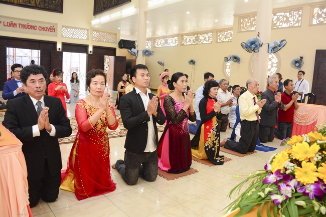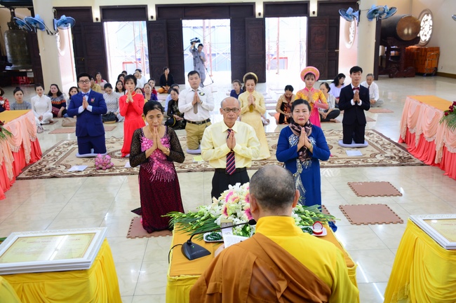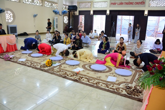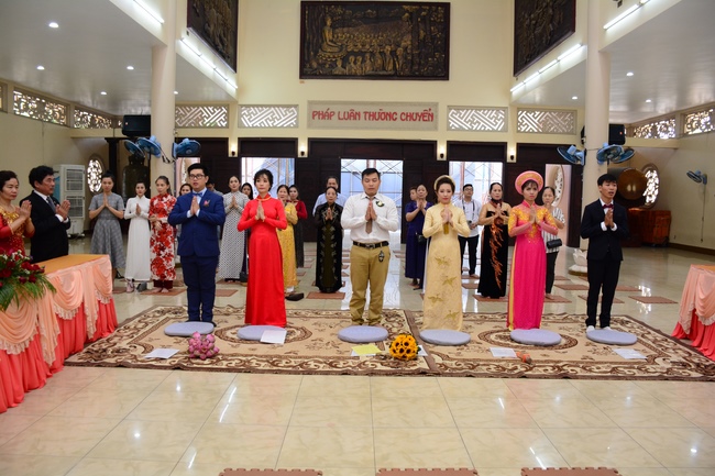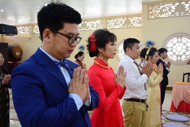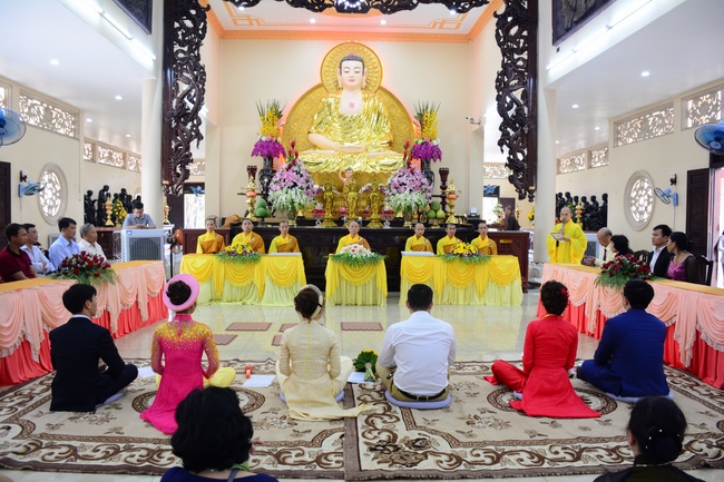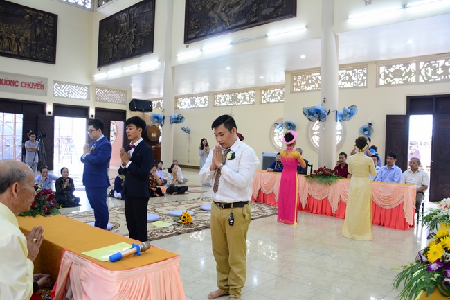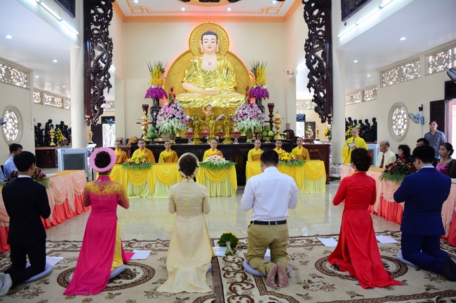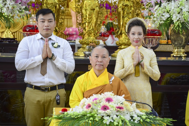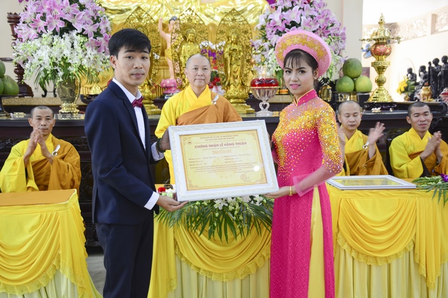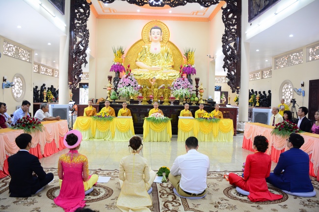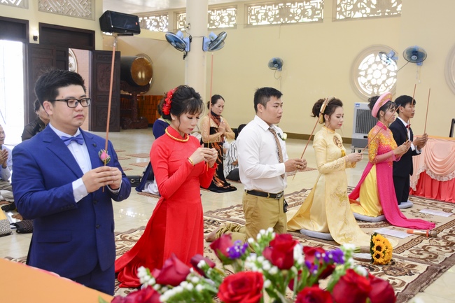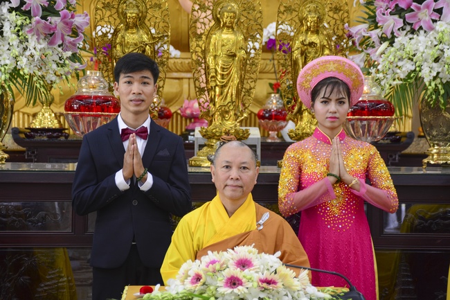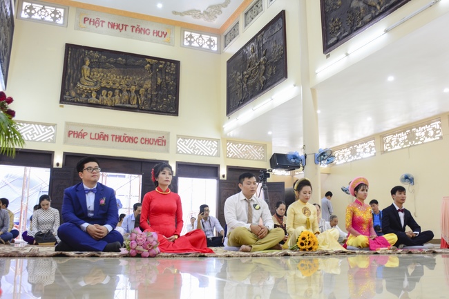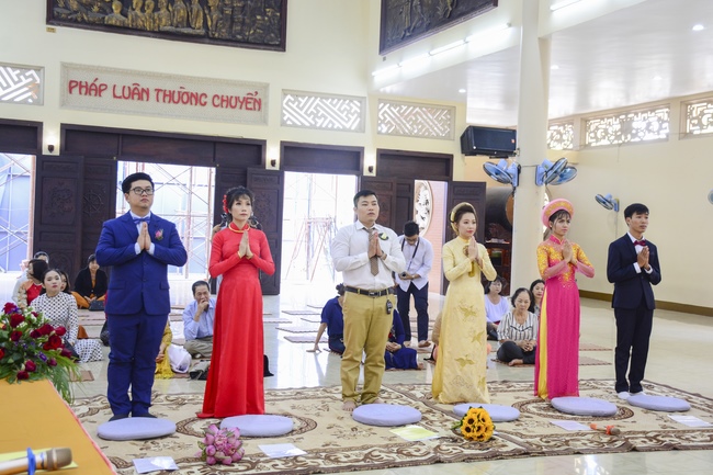 On Jan 25, 2018 (Dec 09, lunar calendar), Hoang Phap Pagoda held Buddhism wedding ceremony for young couples: Groom Dao Tan Nguyen and bride Nguyen Son Ca, groom Nguyen Huy Hao and bride Dinh Thi Hong, groom Tang Hai Hoang Hiep and bride Pham Thi Quynh Anh.