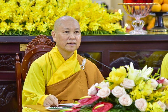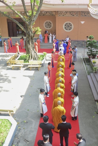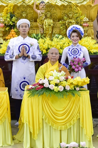 Senior Venerable Abbot Thich Chan Tinh, on behalf of Hoang Phap Sangha, sends his advice on marriage ethics to young couple. The key point for happy marriage is harmonization, the root of peace. Spouses in harmony can create happy family. Parents and kids in harmony can maintain family morality and tradition. Harmony helps it easy in educating next generations of the family.