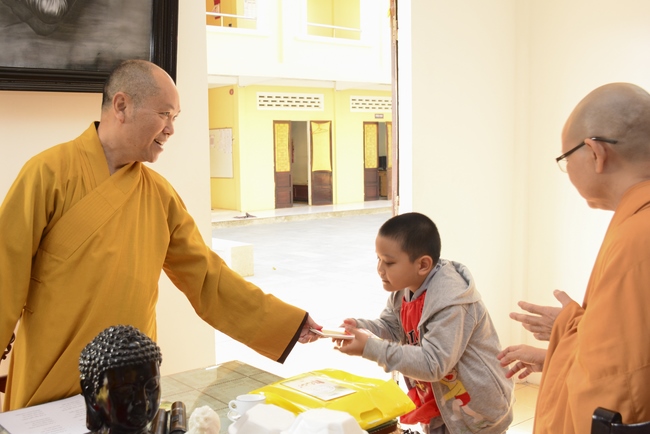In response to their kindness, he sends them new year blessings, lucky money and Dhamma gifts.