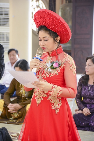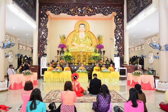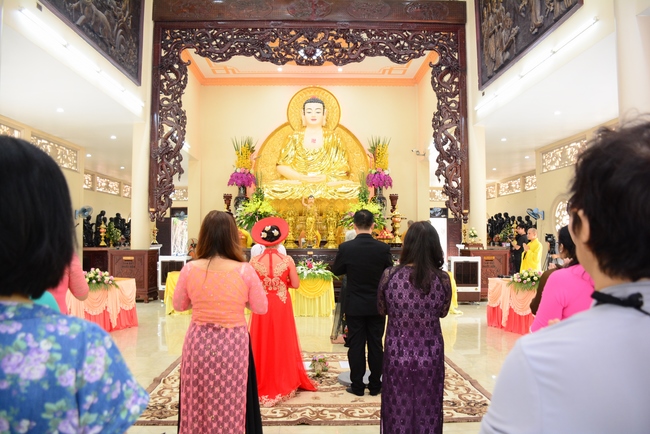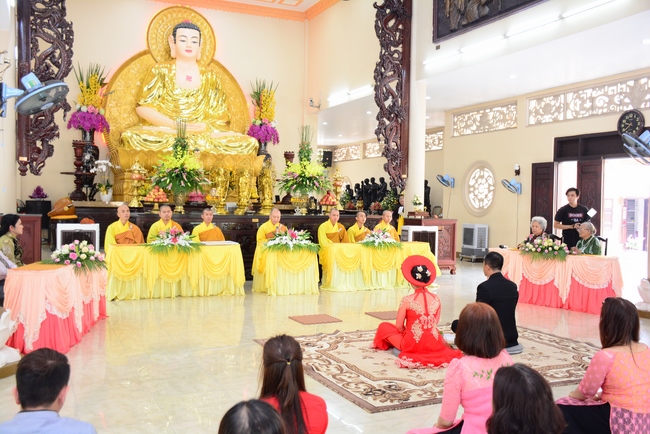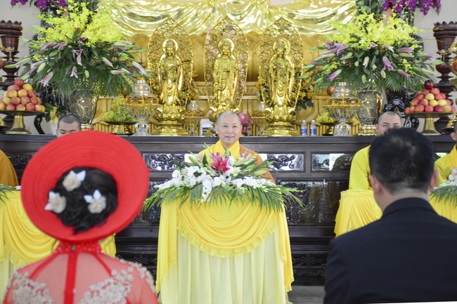 Venerable Thich Chan Tinh, temple’s Abbot, on behalf of Hoang Phap Sangha, sent his advice on marriage ethics to the young couple. The key point for a happy marriage is harmony, the root of peace. Spouses in harmony bring about a happy family. Parents and kids in harmony can maintain morality and give an easy education training in the family’s next generations.
