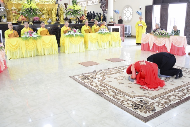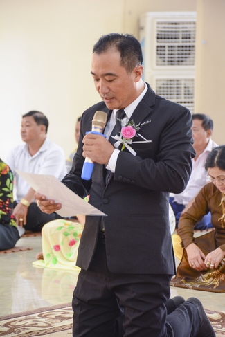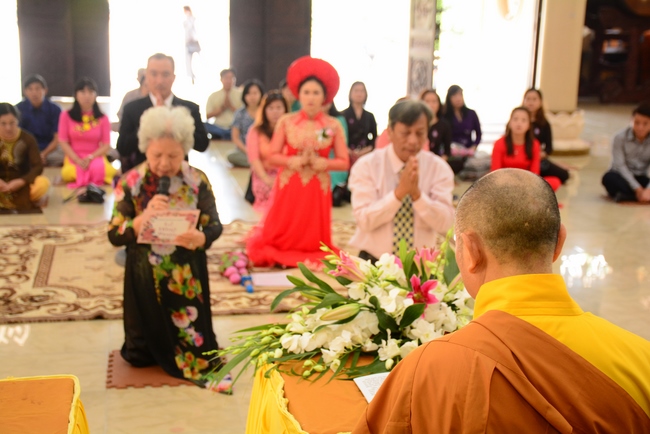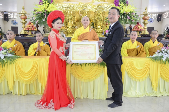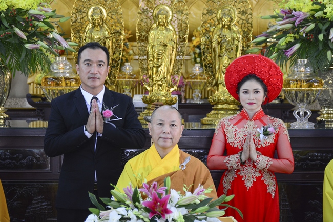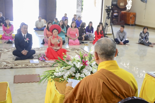 In addition, he also reminded young couple having proper preparation for future by taking refuge in Triratna and abiding five precepts for lay Buddhists. Each of family member should learn Dharma and apply to daily life, be virtuous men and believe in the Karma Rule. Five precepts are the basic rule of human morality. It produces for lay Buddhists are the basic morality for human beings, and conduct a happy life for not only the current existence but the future.