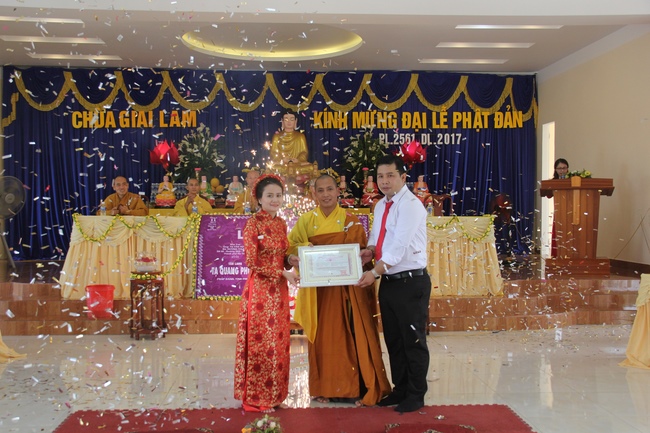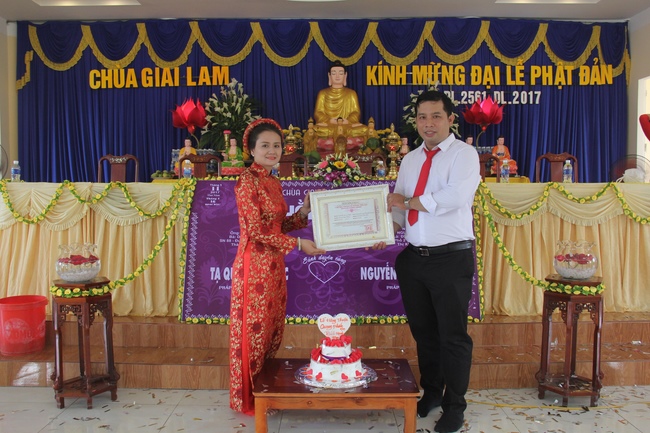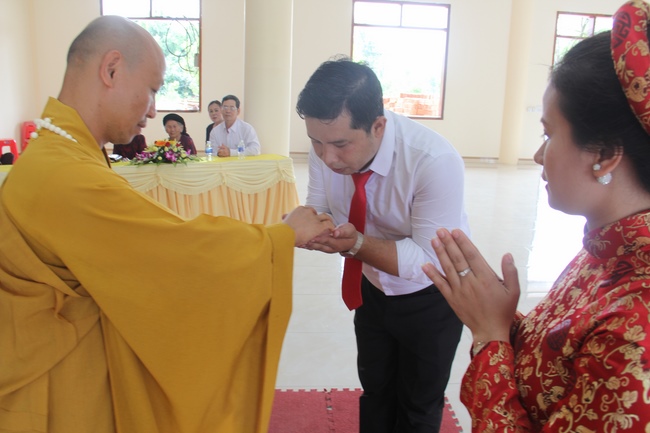 At the end of the ceremony, Venerable Thich Tam Nguyen gave the certificate and souvenir to the groom and the bride.