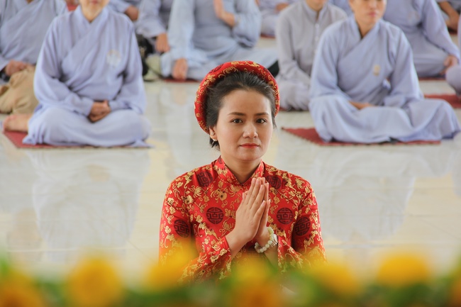 After celebrating the rituals of theBuddhist wedding ceremonyas thurifying to the Buddha, the representatives of the two families gave their words and exchanged wedding rings ... In the solemn atmosphere of the ceremony, Venerable Thich Thien Nhon had something to the young couple before entering the new life. To reach the perfect married life, two young people must love, respect and listen, know and forgive faults of each other. At the same time, each individual must keep and fill in duty as well as the responsibilities of the husband and the wife as teaching words of Buddha in the Sanskrit Karma: the husband must be polite, entrusts the housework, custom jewelry, goes to work and goes home on time, faithfulness to his wife. The wife must be gentle, goes to bed lately and gets up early, resourceful housework, preservation of property, saves money, cares for the education of children. If we apply these Buddha’s teaching to the family life, we will get long with lasting happiness.