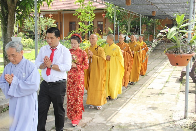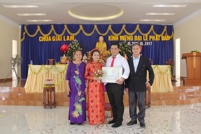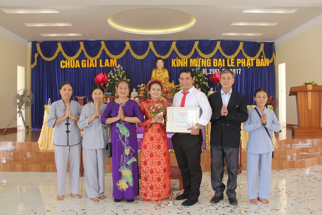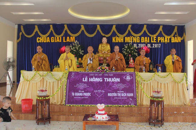 In the morning of May 11th, 2017 (Lunar April 16th, Rooster Year), there was the Buddhist wedding ceremony of the groom, Ta Quang Phuoc (Dharma Name: Tinh Phuoc) and the bride Nguyen Thi Bich Hanh (Dharma Name: Dieu Hoa).