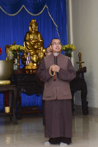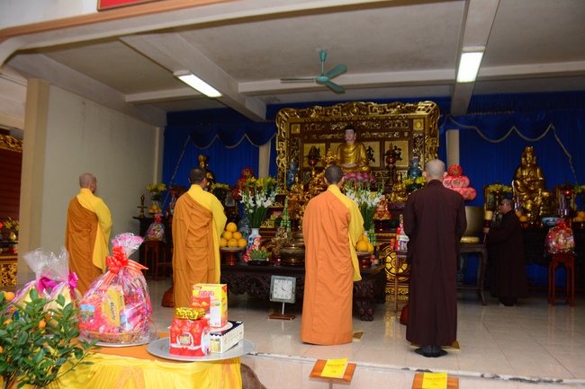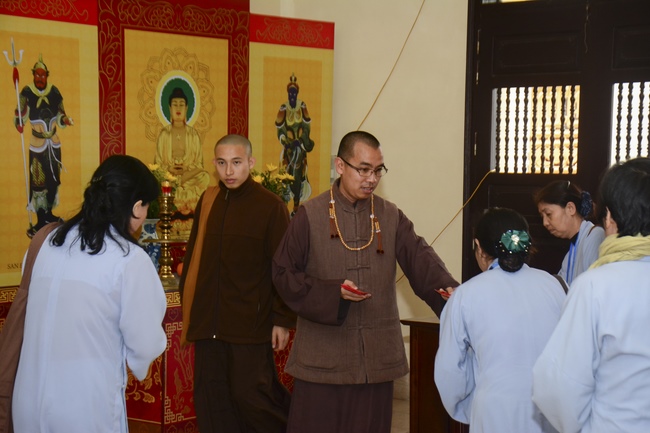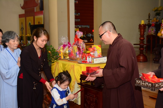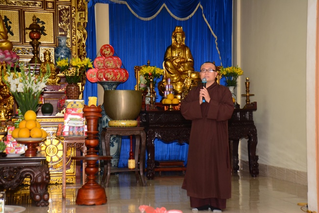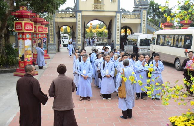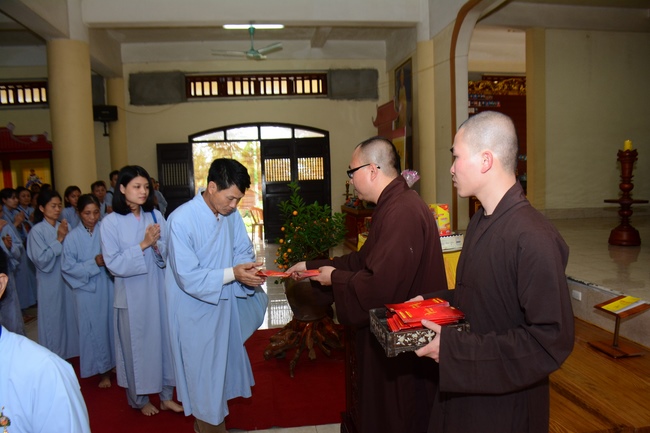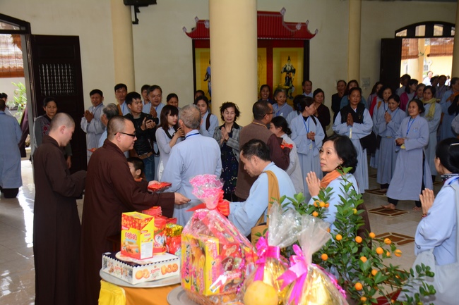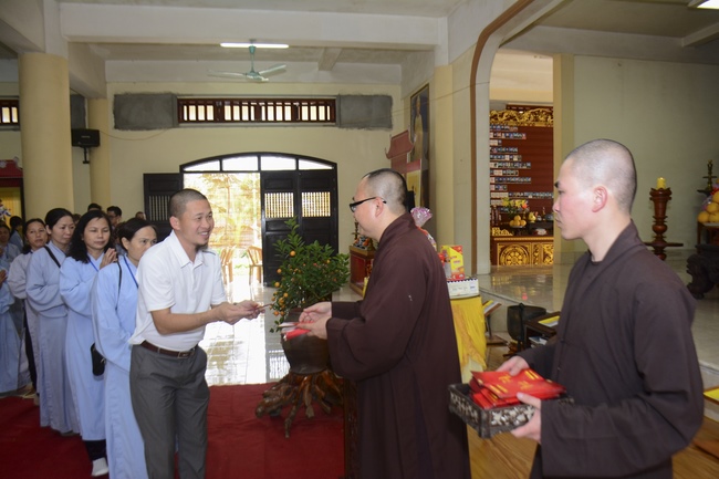 Junior Ven Thich Tam Kinh, abbot of Tay Khanh Pagoda enthusiastically welcomed the group. On this occasion, He sent new year wishes as well as had some talks to Buddhists who came to Tay Khanh Pagoda. Besides, he reviewed the amount of cultivation of elders, especially old great Venerable Ngo Chan Tu, a great one having great contribution of reconstructing the temple, developing right Dharma and establishing Hoang Phap Pagoda in the South. Based on that, people should follow His precious lectures to complete Cultivating goals. Finally, He offered gift to them.