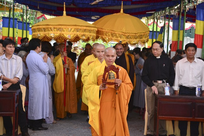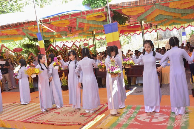 The ceremony began in solemn, tranquil and intimate atmosphere in thewitness of Most Venerable Thich Nhuan Thanh, Chief of Buddhism staff of Thanh Hoa Province and honorable monks, nuns of nearby monasteries. Besides, there were other religious representatives, local government and Buddhists from many places.