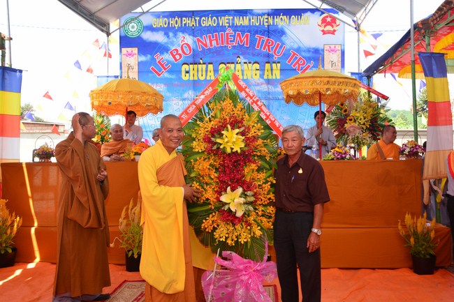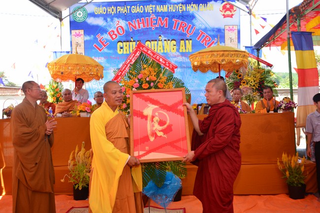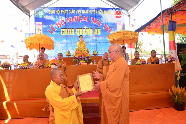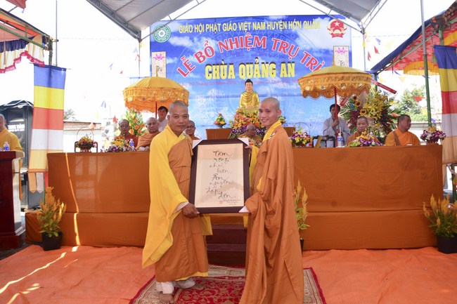 In the ceremony, Most Venerable Thich Nhuan Thanh offered the official certificate appointing Junior Venerable Thich Tam Anto the Abbot of Quan An Pagoda. Affter that he explained about meaning and duty of “A Dharma Director, Tathagata’s canonkeeperâ€. This is great responsibilityof the new abbot. Therefore, leaders of government ranks and Buddhists are expected to support and offer favourable conditions to Quang An Pagoda, which brings profit to society andBuddhism.