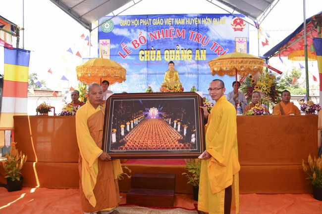 On March 20th, 2016 (February 2nd, Monkey Year), permitted by Senior Venerable Thich Chan Tinh, the Venerables of Hoang Phap Pagoda came to Quang An, Tan Loi commune, Hon Quang district, Binh Phuoc province to attend the ceremony appointing the abbot of Junior Venerable Thich Tam An.