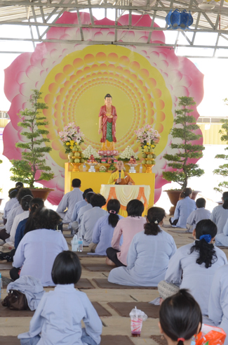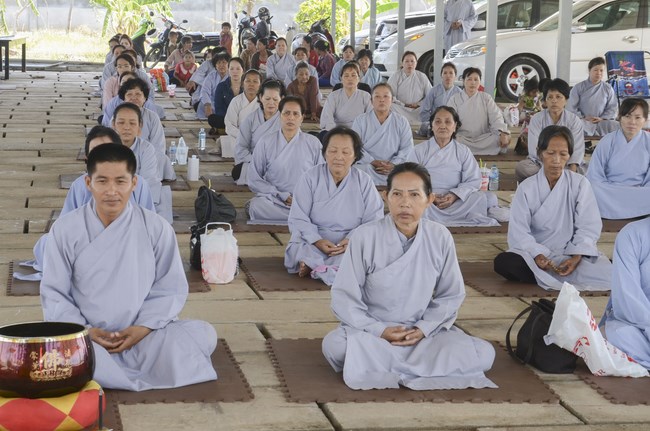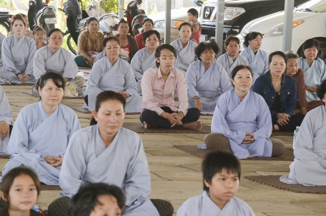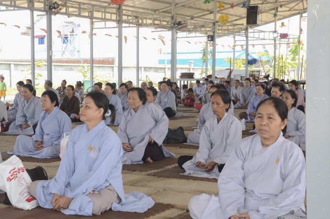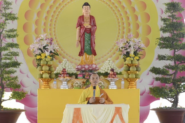 Before beginning the course, Jun. Ven. Thich Tam Luc, Hoang Phap’s Abbot in Cambodia talked about Avalokitesvara’s merit and practice. This person has the action and vow who not only listens to sattvas’s sufferings but also helps sentient beings. His appearance is descripted as a man in the Lotus Sutra, but after Buddhism came to China then Vietnam etc. Avalokitesvara is worshipped as a woman. Due to Asian people’ belief in general and Vietnam in particular whose image looks like a mother, whose love to Buddhists as children, often protecting, blessing, and saving people’s suffering. Mother Avalokitesvara’s images are always admired and worshiped; therefore his statue is set up as a women in many places.