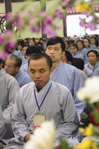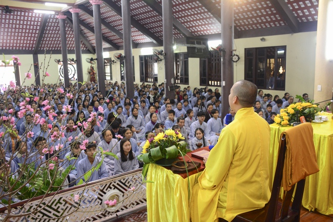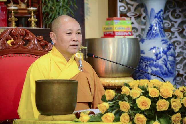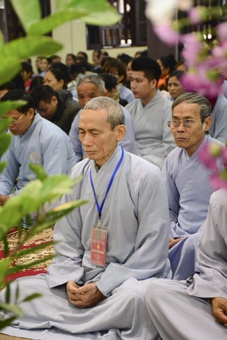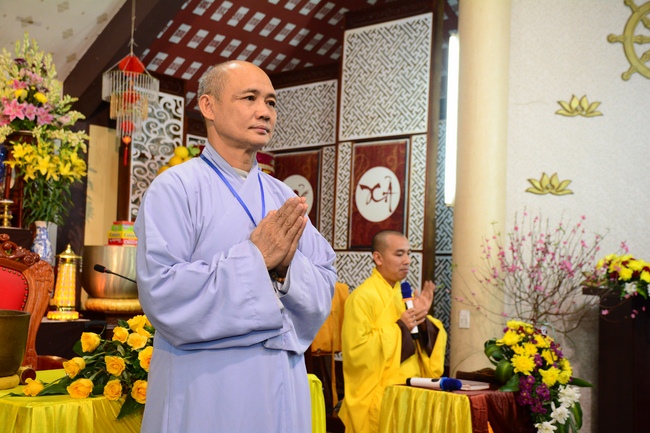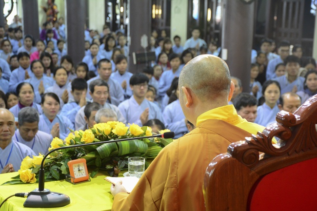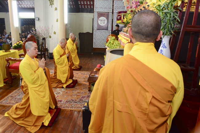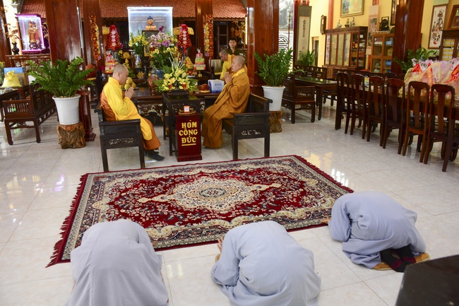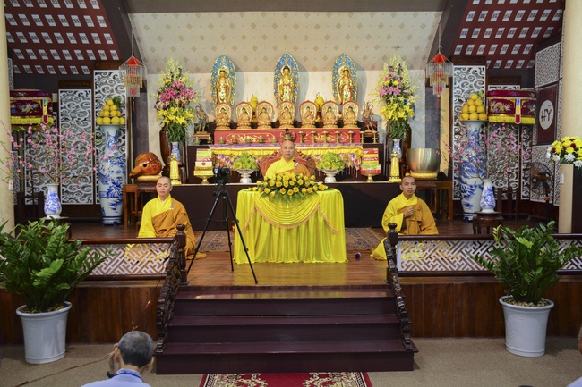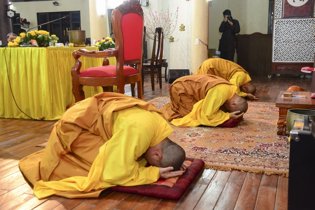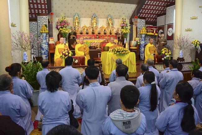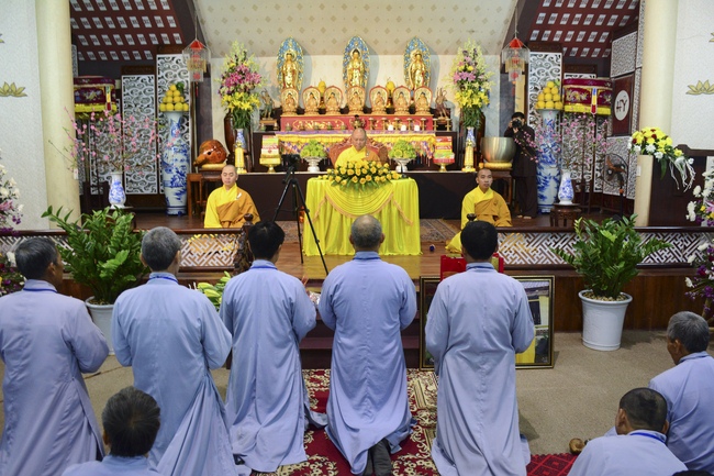 At 2pm, Senior Abbot Ven. Thich Chan Tinh and the Venerables came to the main hall for precept transferring. During the ceremony, he said a few words to them.