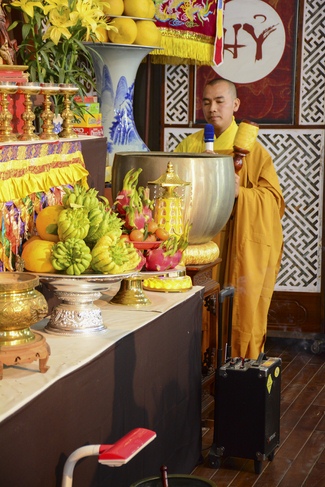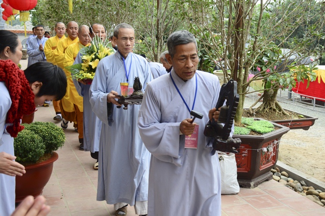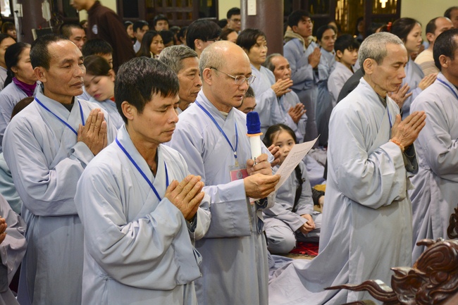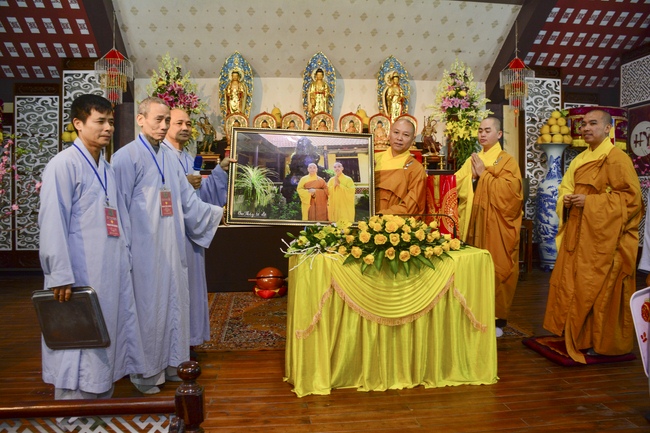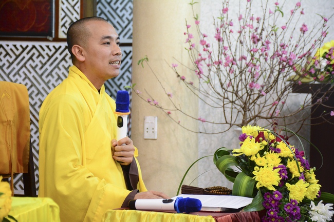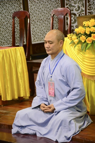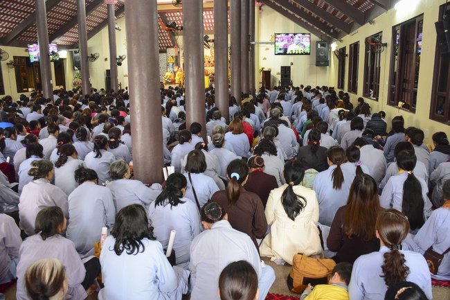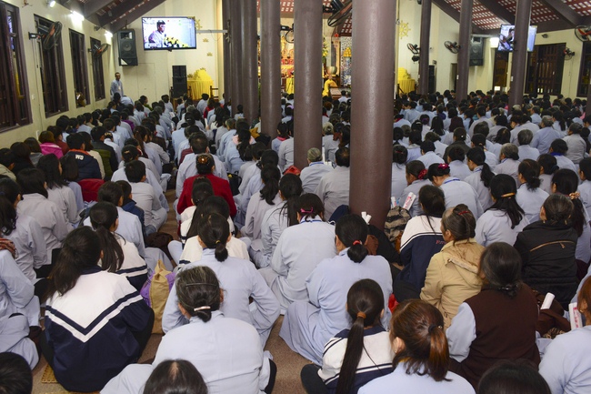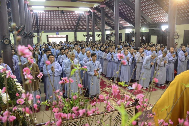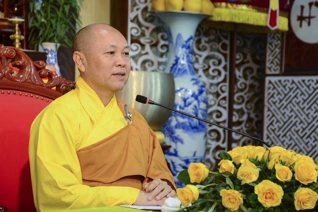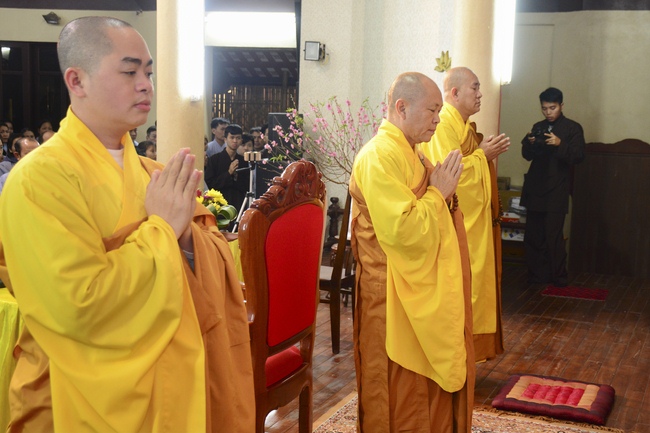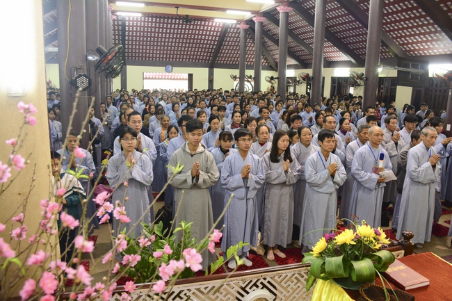 At 2pm, Senior Abbot Ven. Thich Chan Tinh and the Venerables came to the main hall for precept transferring. During the ceremony, he said a few words to them.