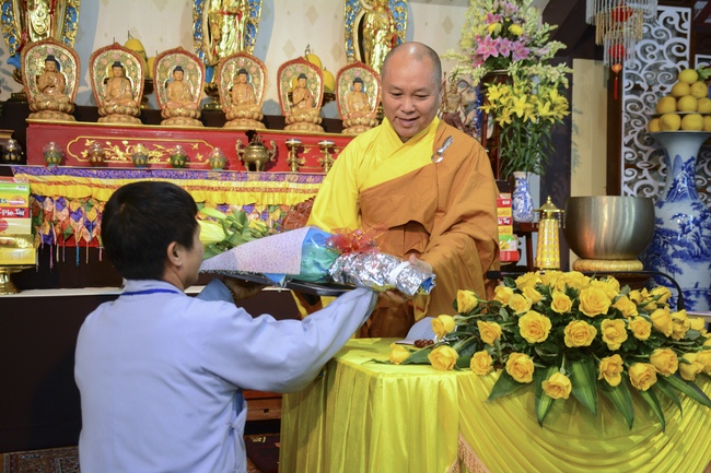Ending the day, Buddhists were offered a gift including a Sakyamuni story book, DVD on Ceremony of Taking Triratna Refuge, The Buddhist’s dignity, The messages from Senior Abbot Ven. Thich Chan Tinh, a VCD on Telling Hoang Phap Propagationin the US.