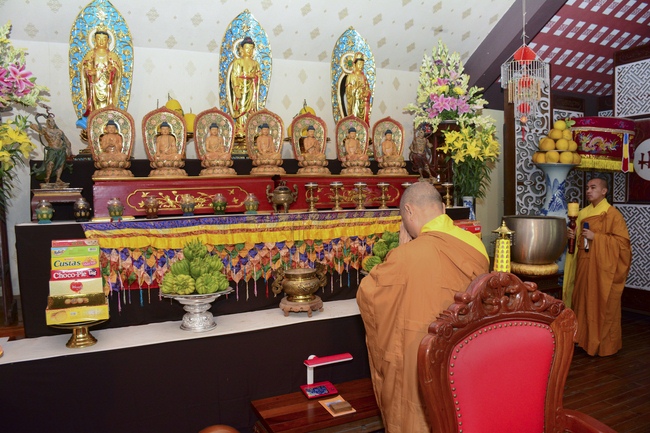 After Taking refuge, the Buddhists should came to pagoda for more practice, at least once per month. If living far away, they should come back to the pagoda on the special occasion such as Anniversary of the Founder, Buddha’s Birthday, Ulumbana Ceremony etc. Besides, each family should set up a Buddha altar to worship at home.