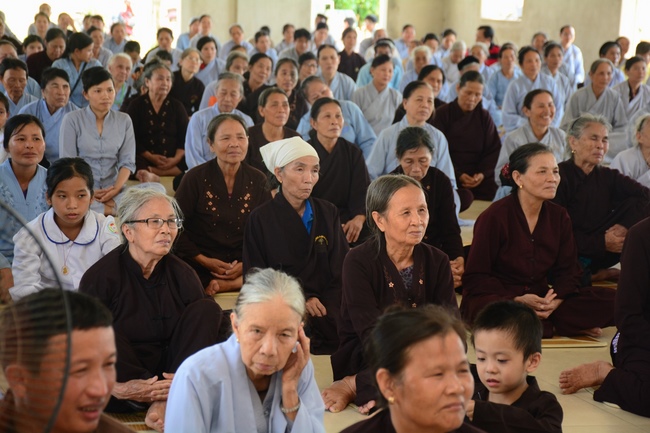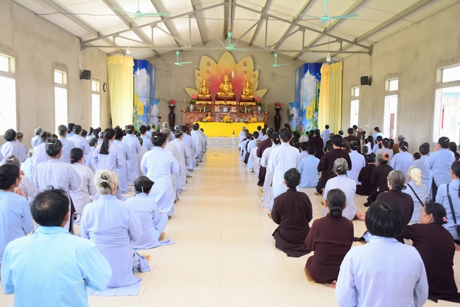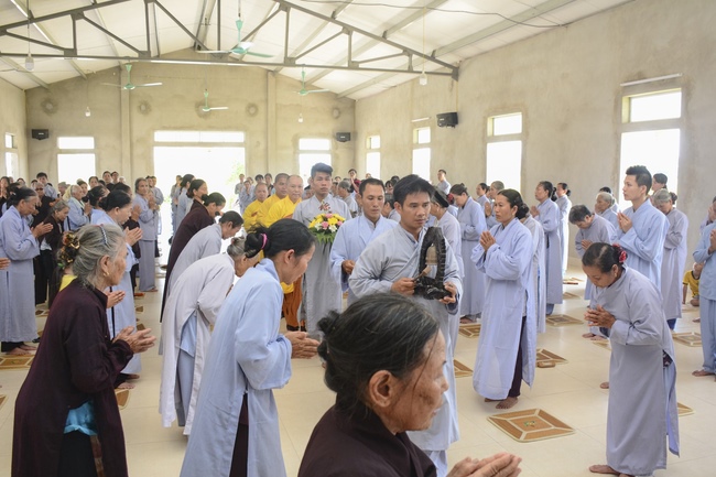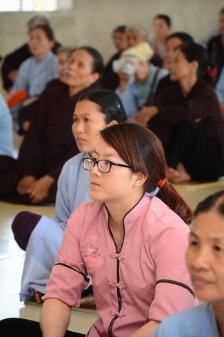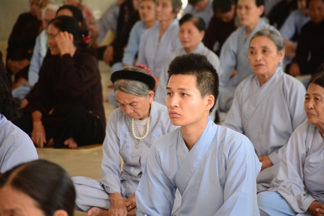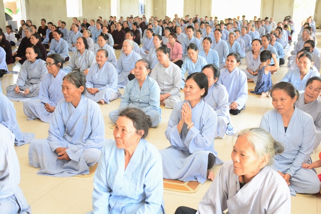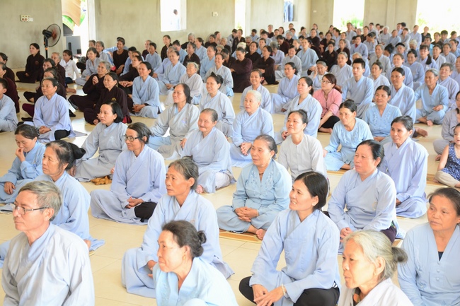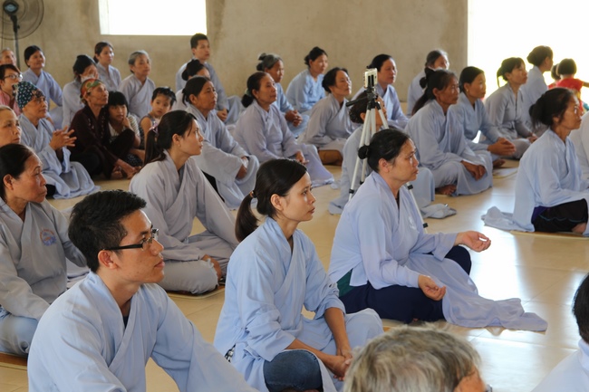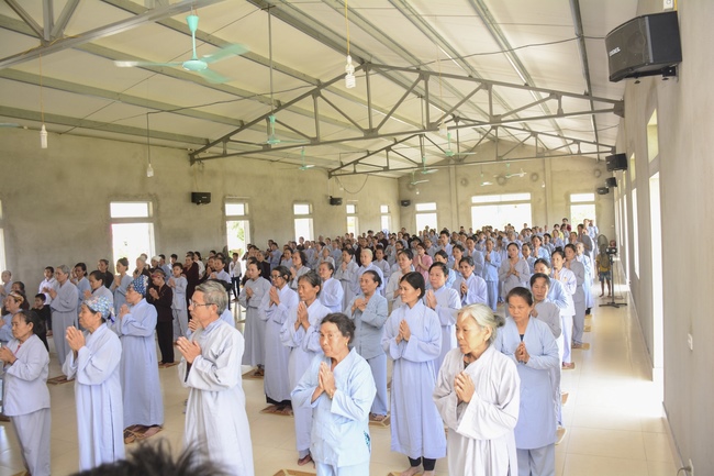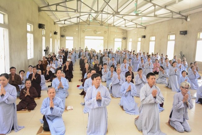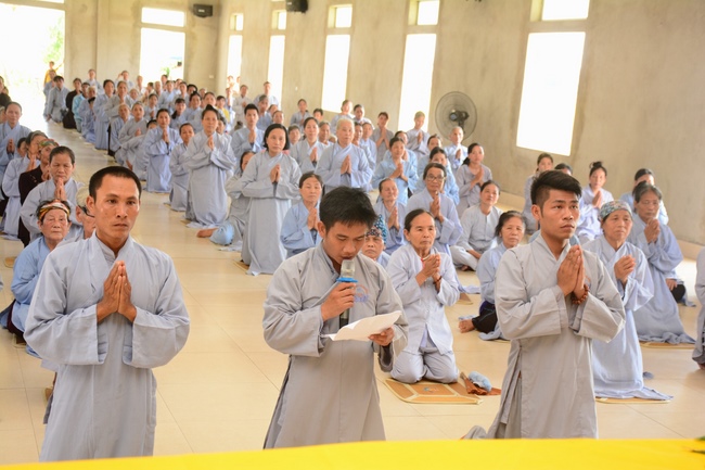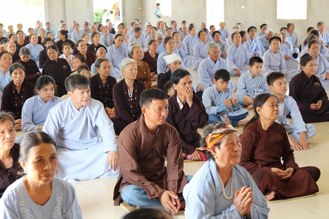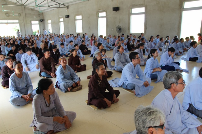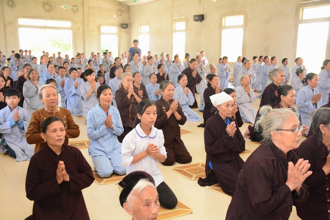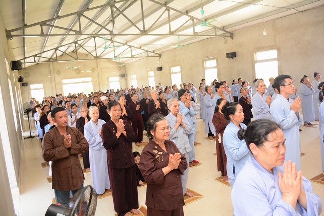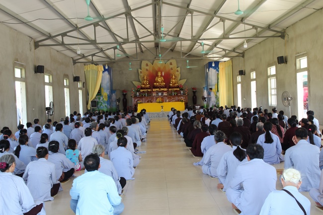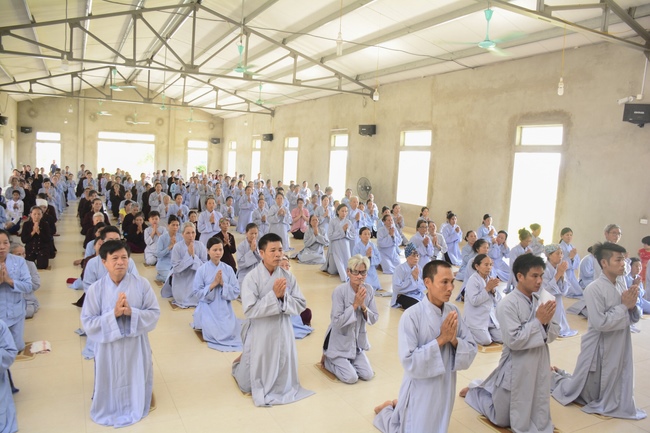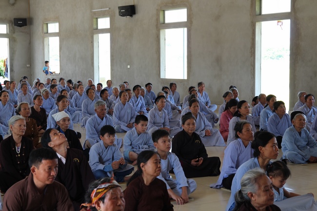 In the morning, Buddhists gathered at the hall to listen Junior Venerable Thich Tam Kinh, abbot of Tay Khanh Pagoda - Thai Binh Province explains some basicdoctrines about Taking Triratna Refuge, the meaning of Three Refuges and five Precepts, all related concepts of Repentance, Buddhist name, upasaka, upasika, etc.