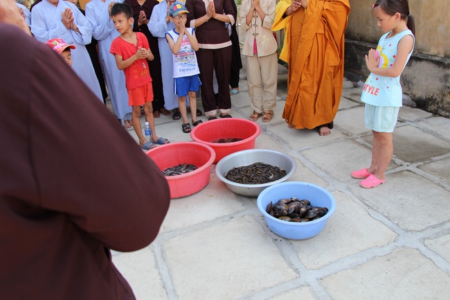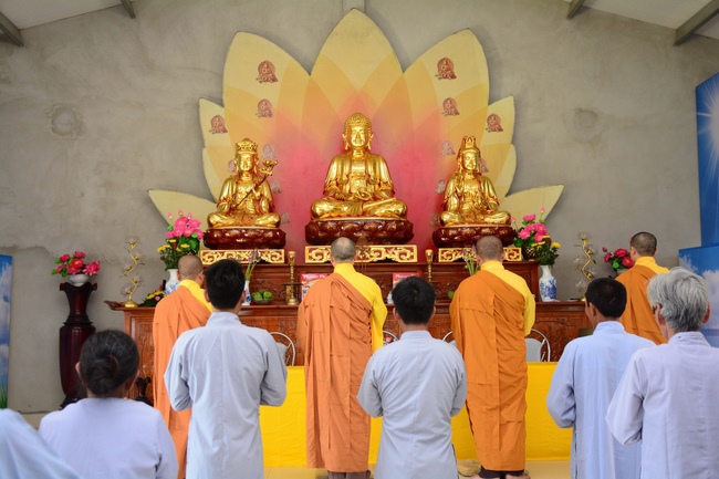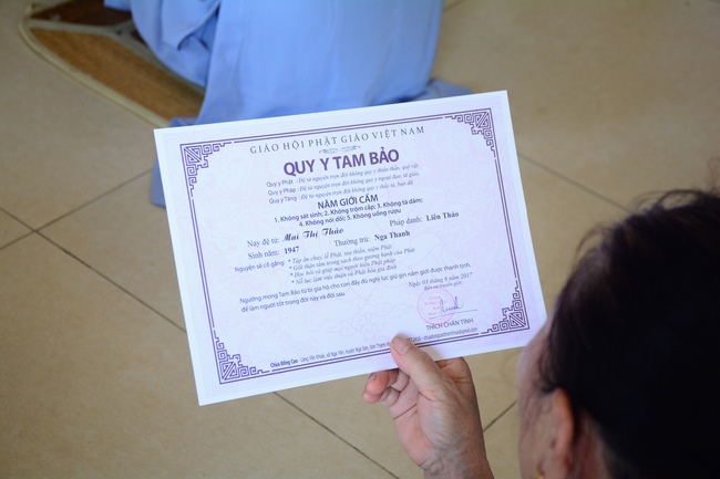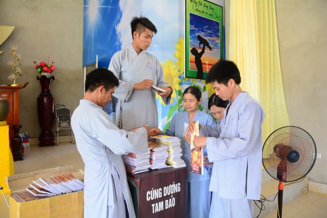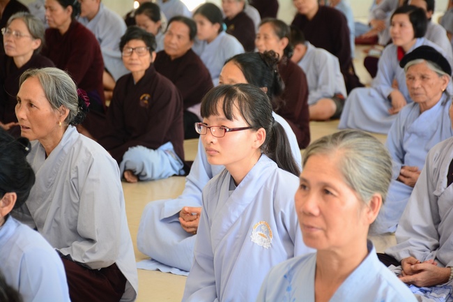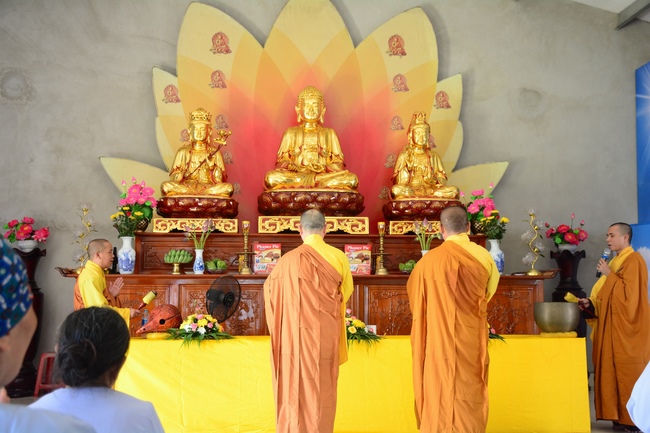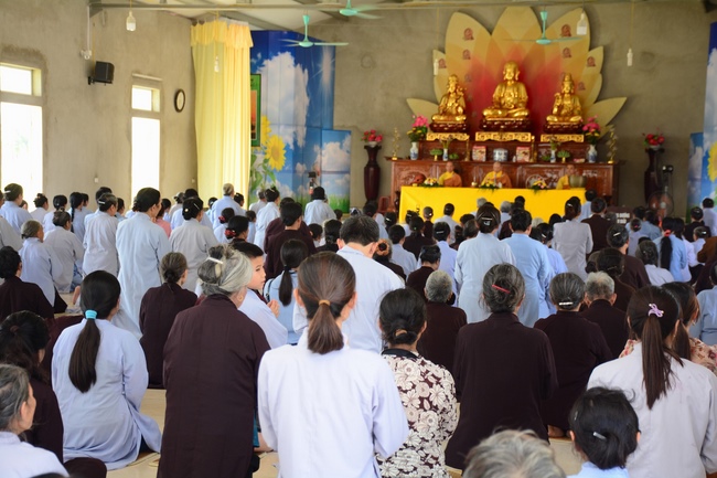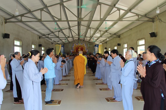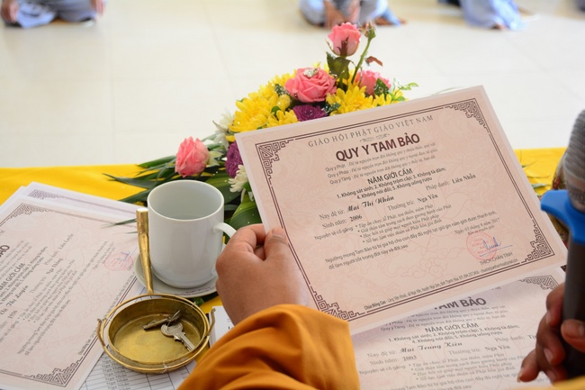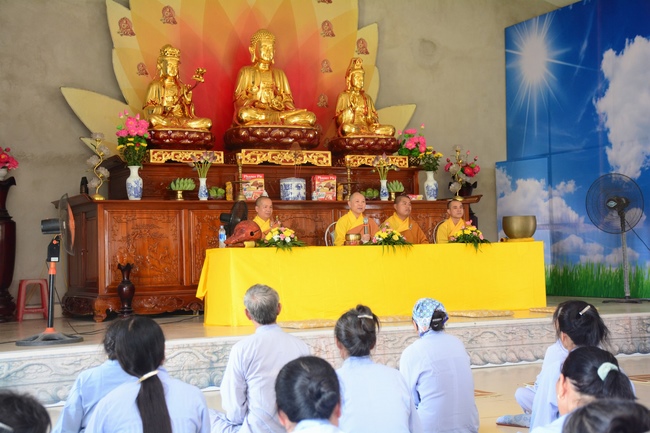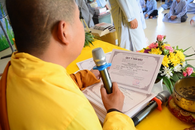 The Venerable Master clarified the meaning and benefits of taking refuge and observing the precepts. In addition, he especially reminded the Buddhists that after taking refuge in the Three Jewels, they should go to the monastery, at least once a month in Buddhist recitation. If the Buddhists live in the provinces where far from the city, they should go to the pagoda to attend the major holidays in the year as the Buddha's Birthday, the Ullambana Festival, Flower Festival to celebrate the Amita Buddha day, etc. At the same time, depending on the family condition, each should set up Buddha altars at home for worship and prostration.