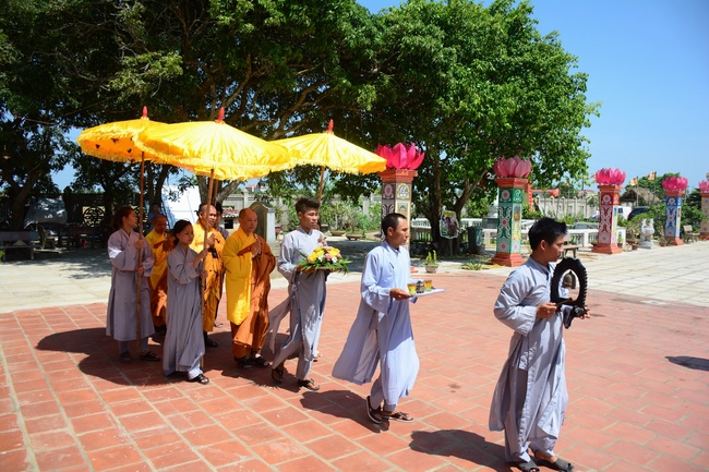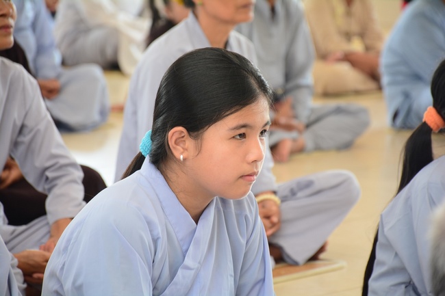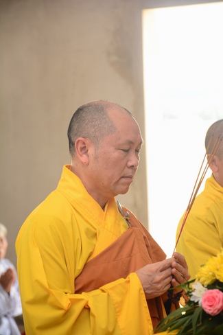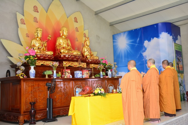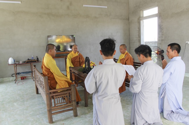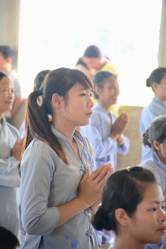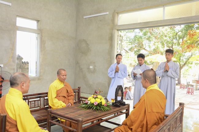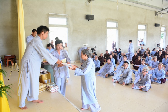 In the afternoon of the same day, Venerable Thich Chan Tinh, the abbot of Hoang Phap pagoda and the monks officially transferredThree Refuges and Five Precepts in the solemn and purity atmosphere of Bodhi-mandala with the true and reliable receiving from disciples. After the incense rituals of Buddha recitation, the Senior Venerable proceeded the repentant manners, transmitted the Three Refuges and Five Precepts. Also in ceremony, the Senior Venerable had some words to praise the desirous spirit of cultivating and studying from disciples and stimulated the beginners who recently joined the religion.