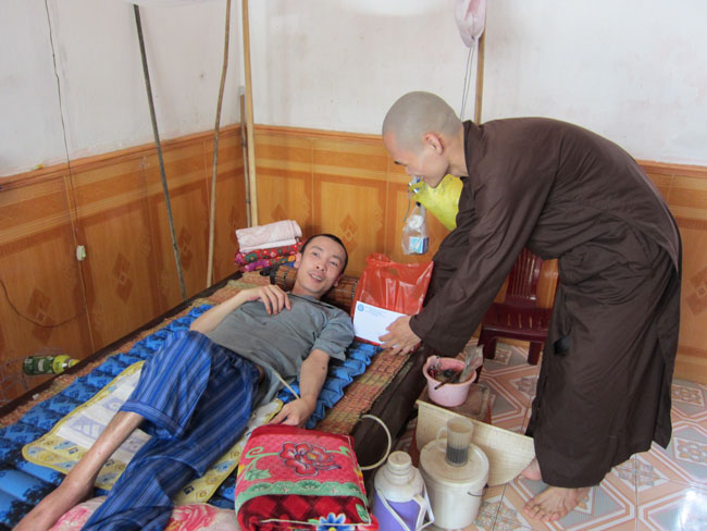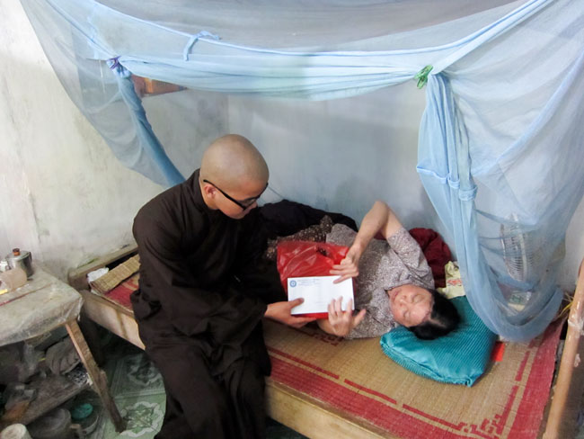 On the morning of 12 May, 2014 (14 April of the Lunar Horse Year) Junior Ven. Thich Tam Kinh, abbot of Tay Khanh pagoda and the Buddhist monks of Hoang Phap pagoda sent meaningful presents to needy people in Quang Hung Commune, Kieu Xuong district, Thai Binh province.